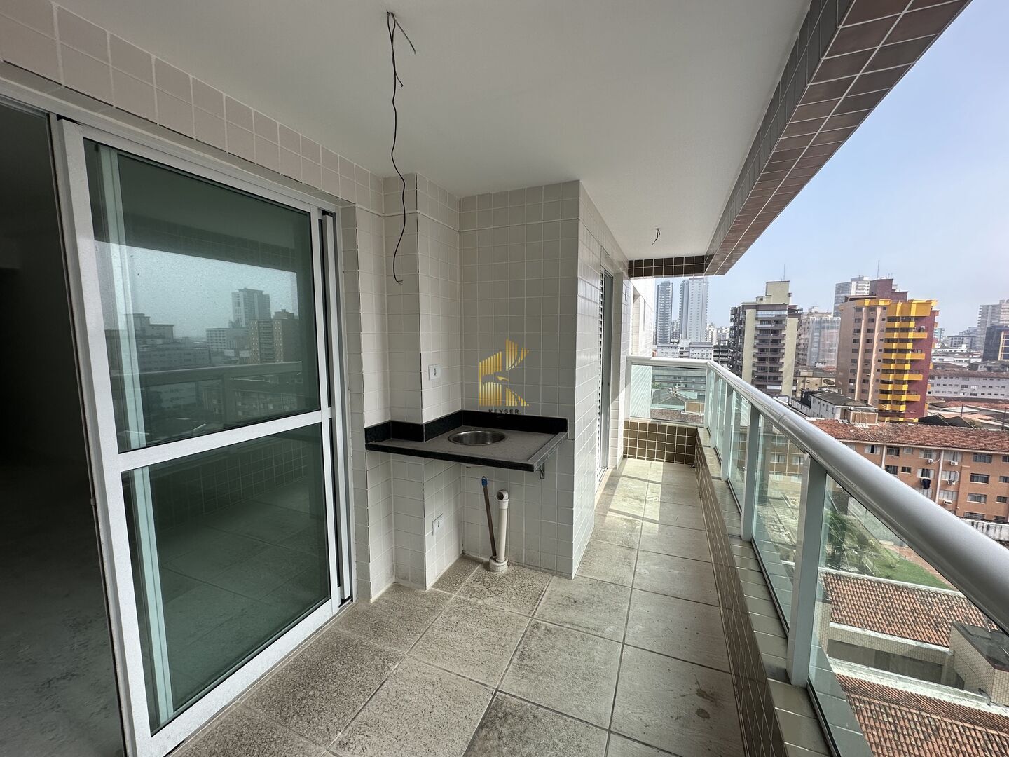 Apartamento à venda no bairro Boqueirão em Praia Grande, SP. 2 dormitórios sendo 1 suíte, sala dois ambientes com sacada, cozinha, área de serviço, banheiro social e uma vaga de garagem.