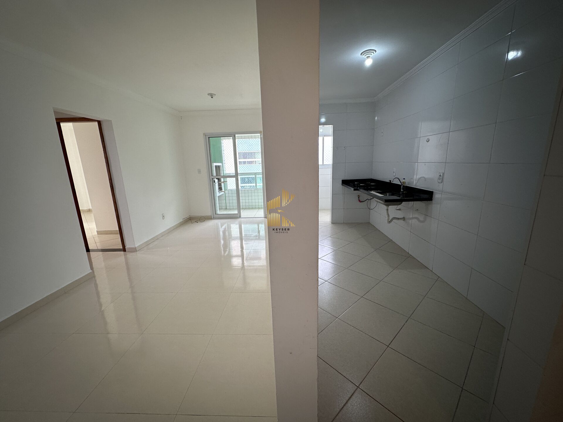 Apartamento à venda no bairro Jardim Real em Praia Grande, SP. 2 dormitórios (sendo 1 suíte), sala dois ambientes com sacada envidraçada, cozinha, área de serviço, banheiro social e uma vaga de garagem.