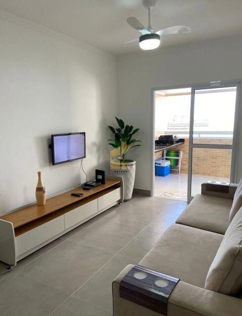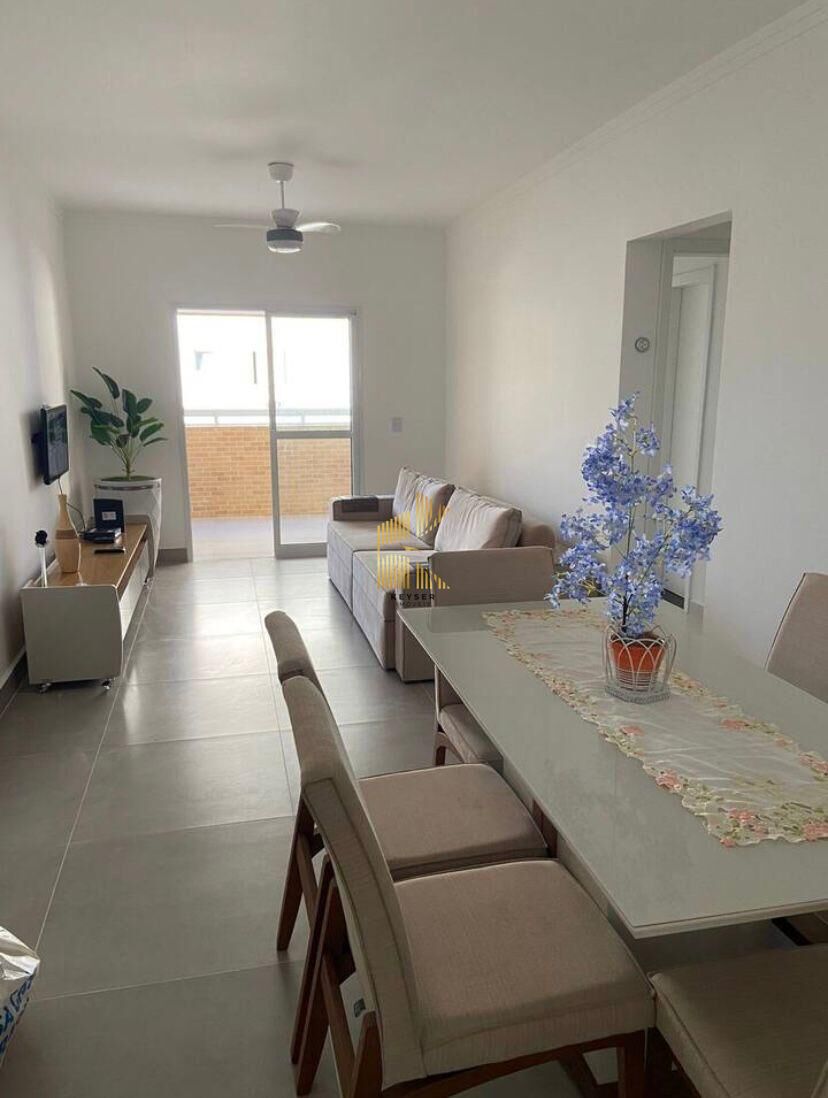 Apartamento à venda no bairro Ocian em Praia Grande, SP. 2 dormitórios (1 suíte) ambos com saída para varanda, sala dois ambientes com varanda gourmet, cozinha americana planejada, área de serviço, banheiro social e uma vaga de garagem. O imóvel será vendido mobiliado.