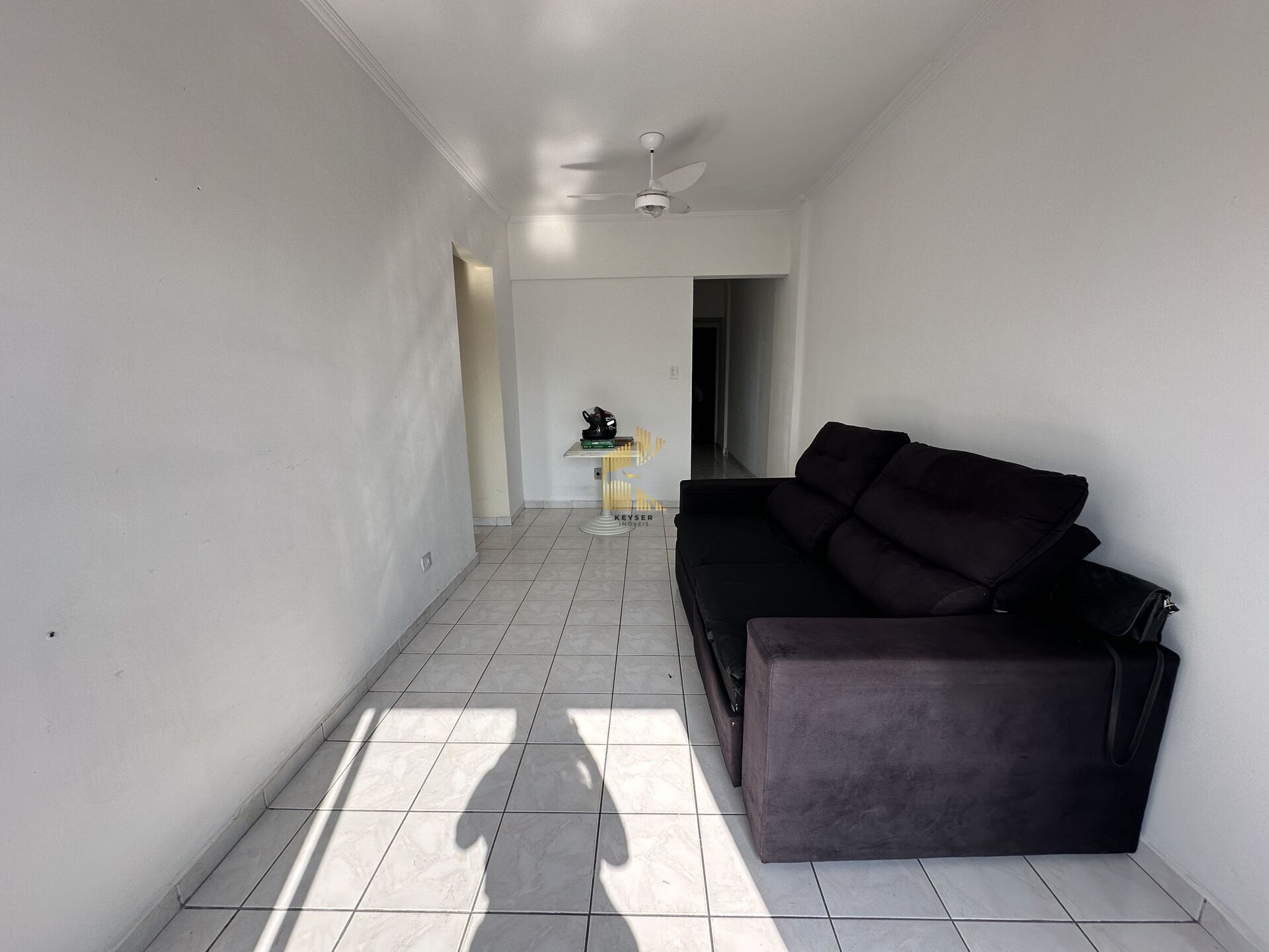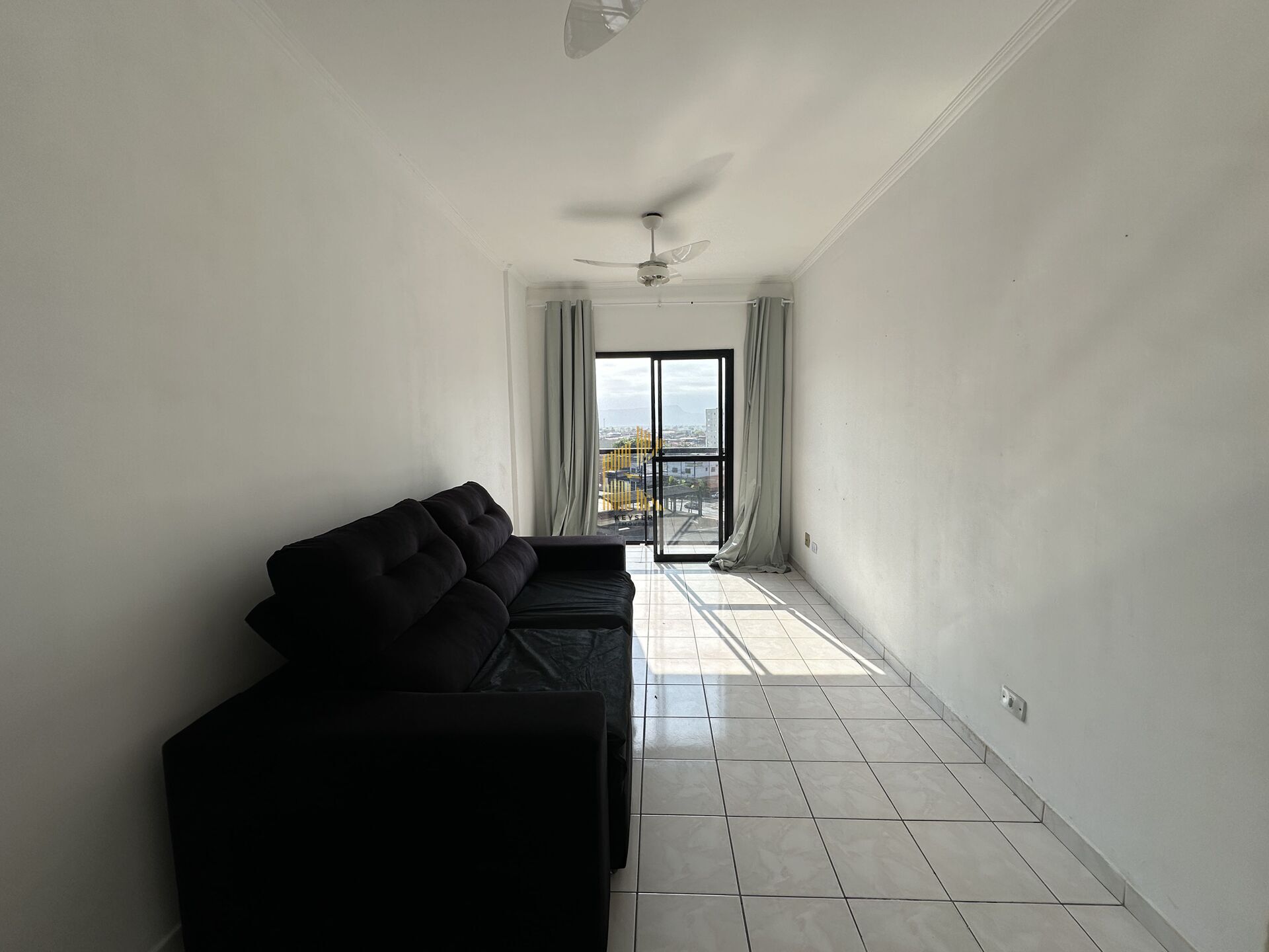 Apartamento à venda no bairro Tupi em Praia Grande, SP. 1 dormitório, sala com sacada, cozinha com móveis planejados, área de serviço bem arejada, banheiro social e uma vaga de garagem.
