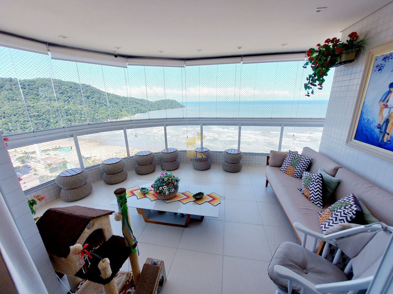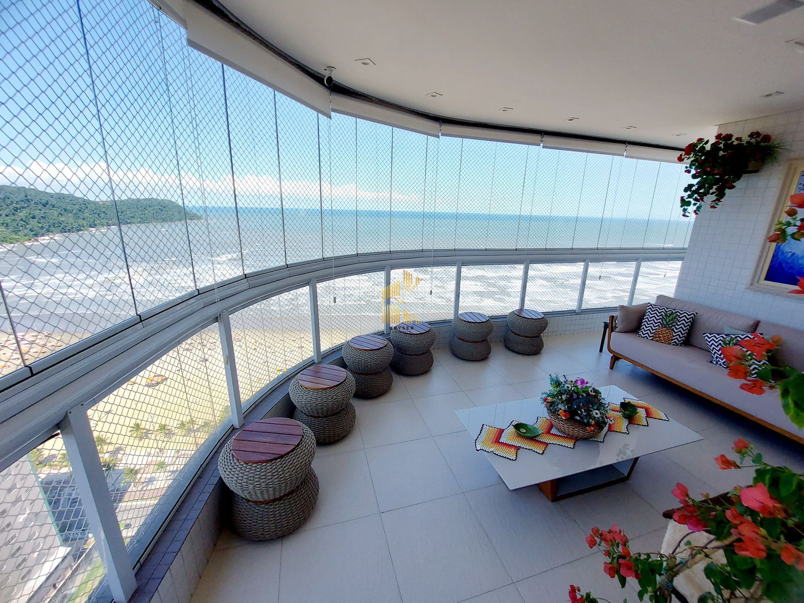 Apartamento frente mar à venda no bairro Canto do Forte em Praia Grande, SP. 4 dormitórios, sendo 3 suítes. A suíte Master possui Closet com possibilidade de colocar banheira, sala dois ambientes com sacada envidraçada, cozinha planejada de alta qualidade, área de serviço, dependencia de empregada mais banheiro, lavaboo, 3 vagas privativas e elevador privativo.