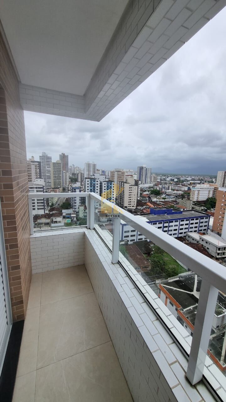 Apartamento à venda no bairro Aviação em Praia Grande, SP. 2 dormitórios (1 suíte), sala dois ambientes com sacada com churrasqueira, área de serviço, banheiro social e 1 vaga de garagem.