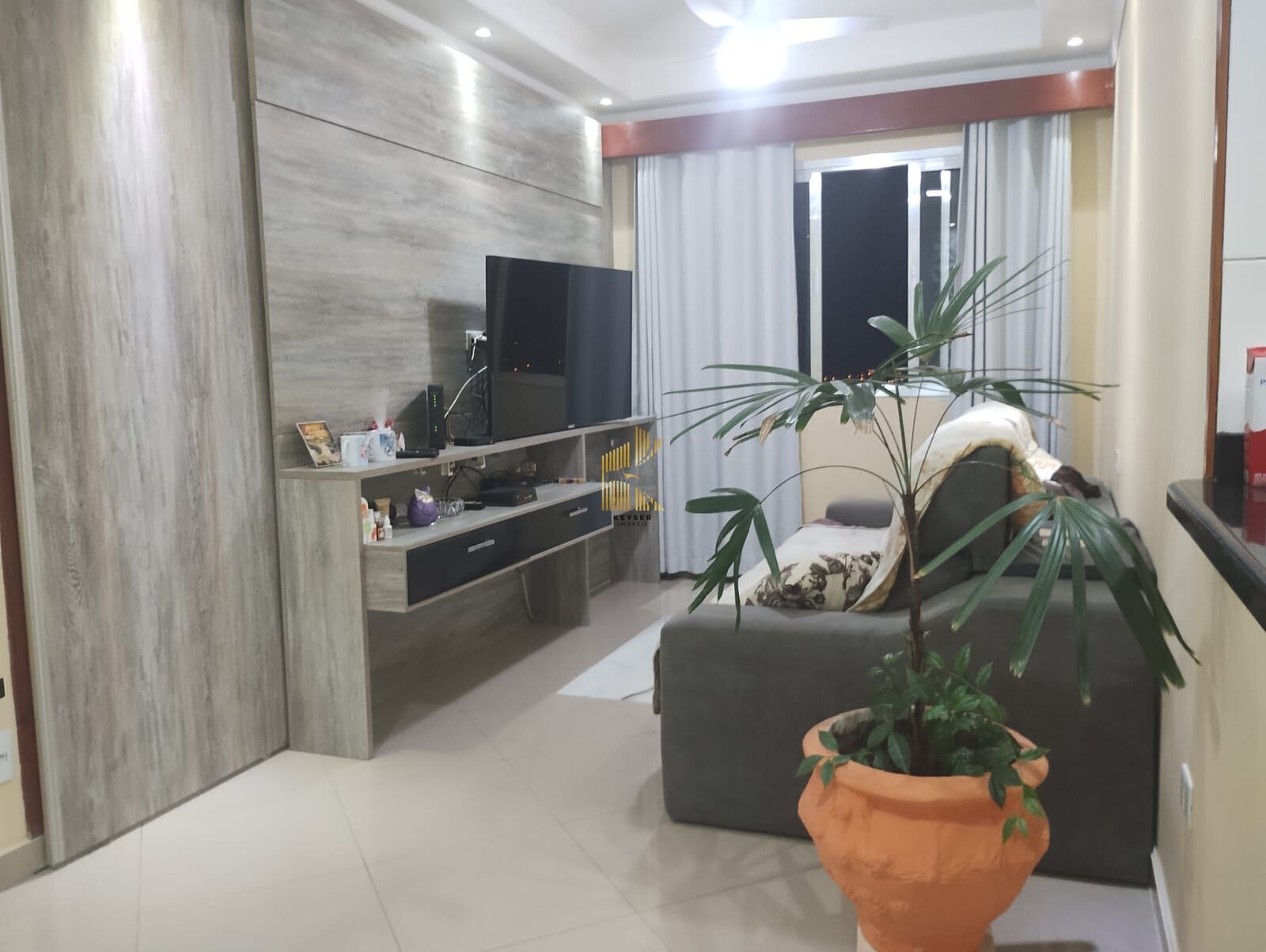 Apartamento à venda no bairro Mirim em Praia Grande, SP. 2 dormitórios, sala dois ambientes, cozinha planejada, área de serviço, banheiro social e uma vaga de garagem. Será vendido mobiliado.