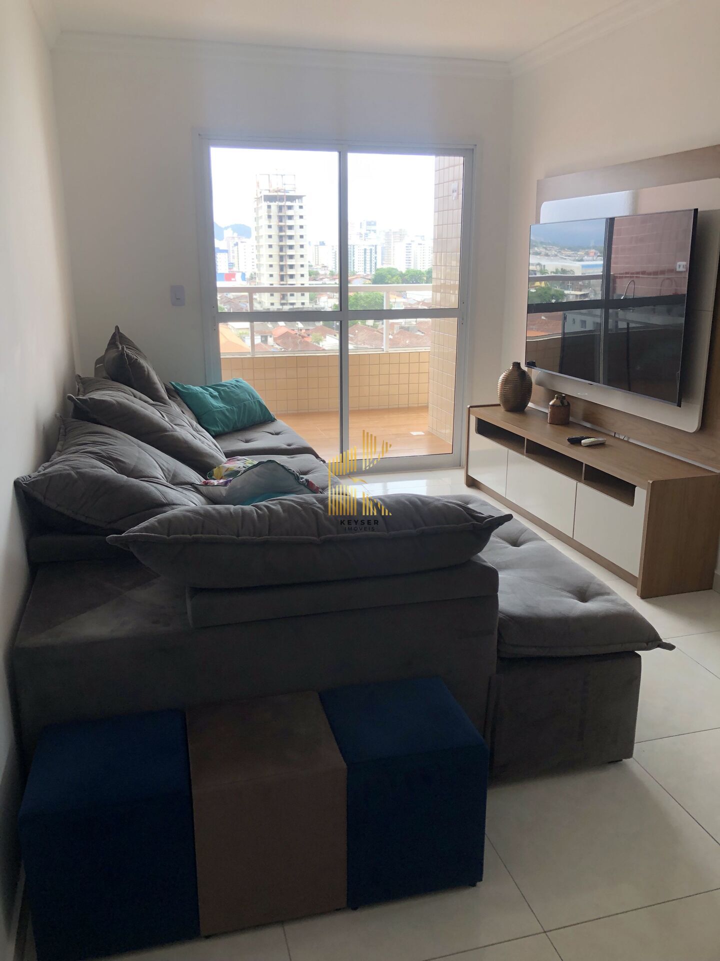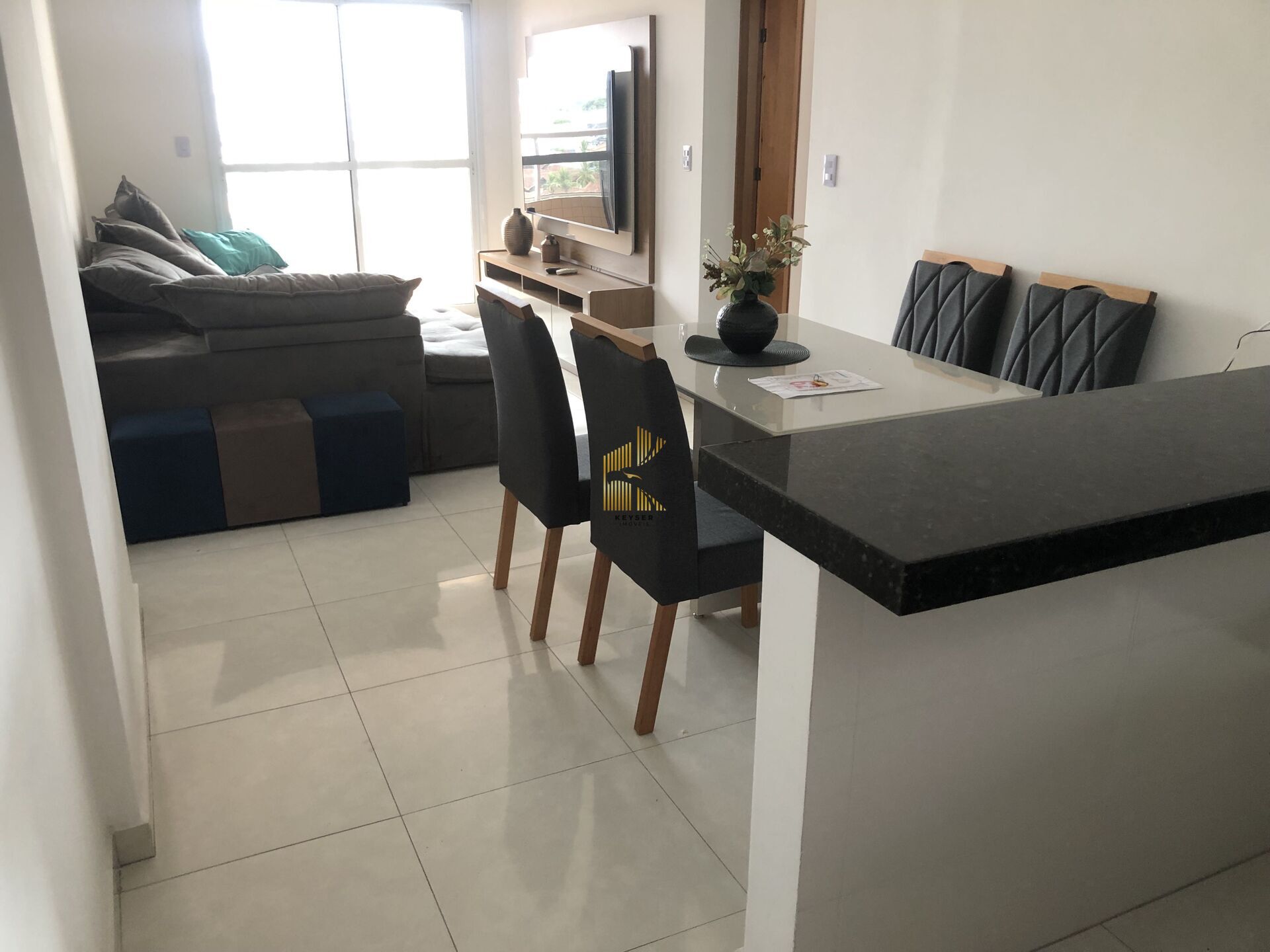 Apartamento à venda no bairro Aviação em Praia Grande, SP. 2 dormitórios sendo 1 suíte, sala dois ambientes com sacada, cozinha com armarios, área de serviço, banheiro social e duas vaga de garagem. Será vendido mobiliado.