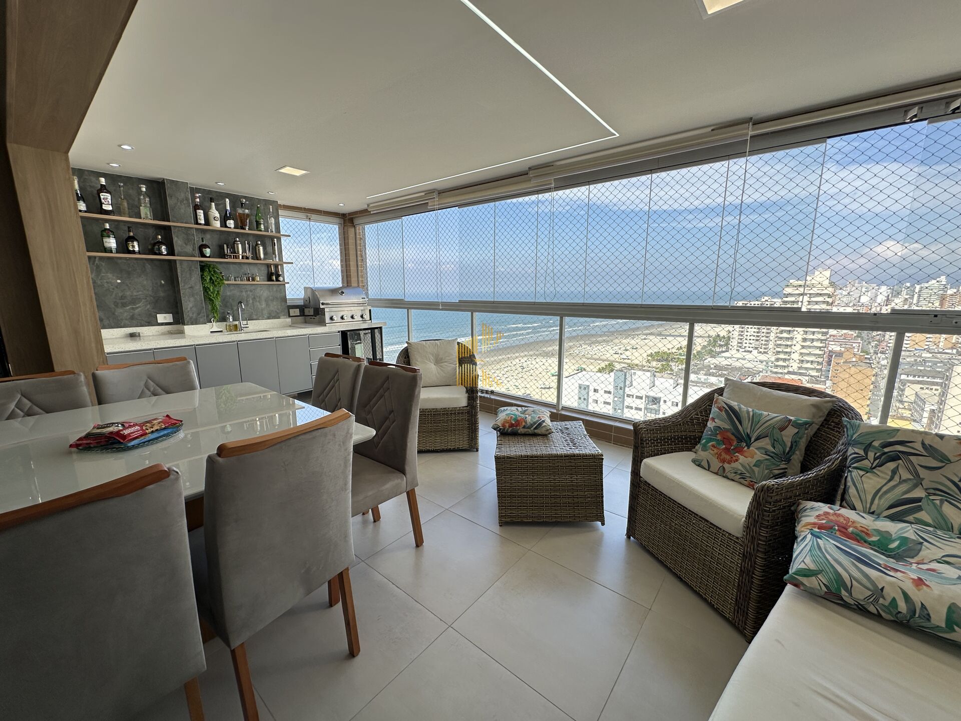 Apartamento à venda no bairro Aviação em Praia Grande, SP. 3 dormitórios sendo 3 suítes (sendo 1 com banheira), sala dois ambientes com sacada envidraçada, cozinha planejada de alta qualidade, área de serviço, area tecnica, lavabo e 3 vagas de garagem. Será vendido mobiliado.