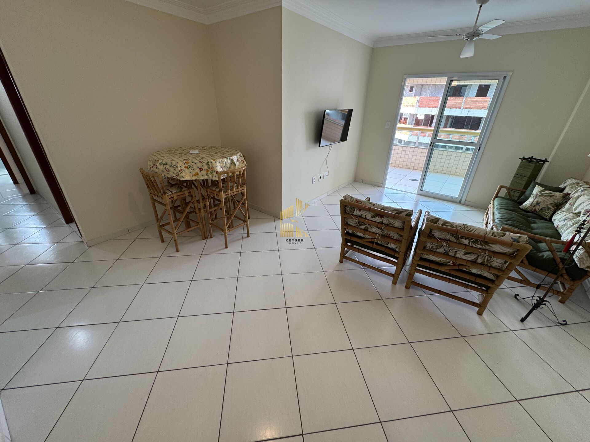 Apartamento à venda no bairro Caiçara em Praia Grande, SP. 2 dormitórios (sendo 1 suíte), sala dois ambientes com sacada, cozinha, área de serviço, banheiro social e 2 vagas de garagem.