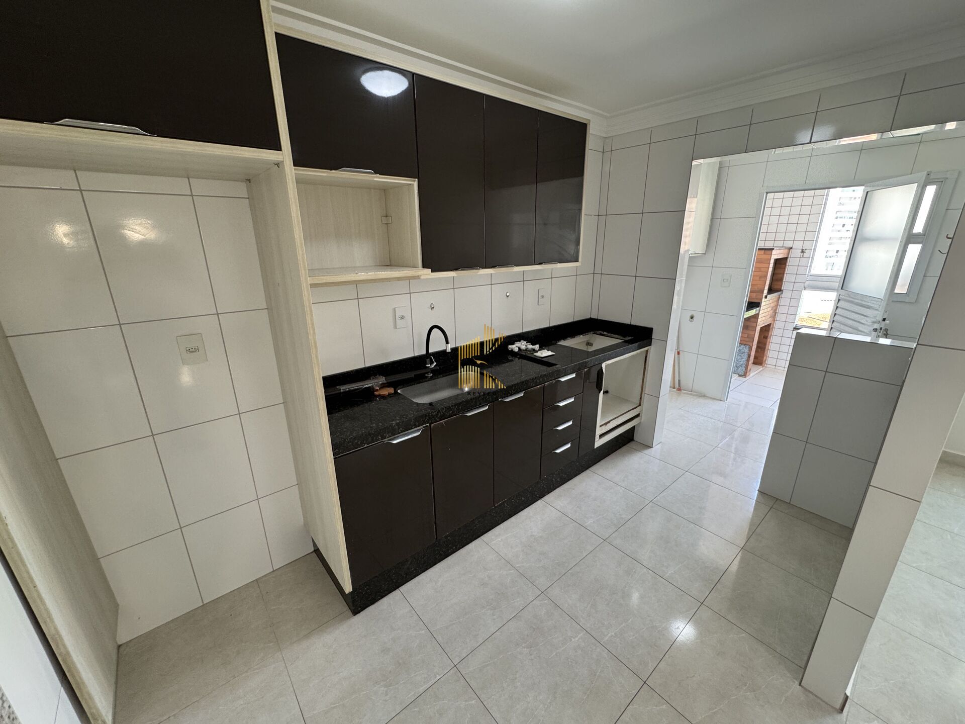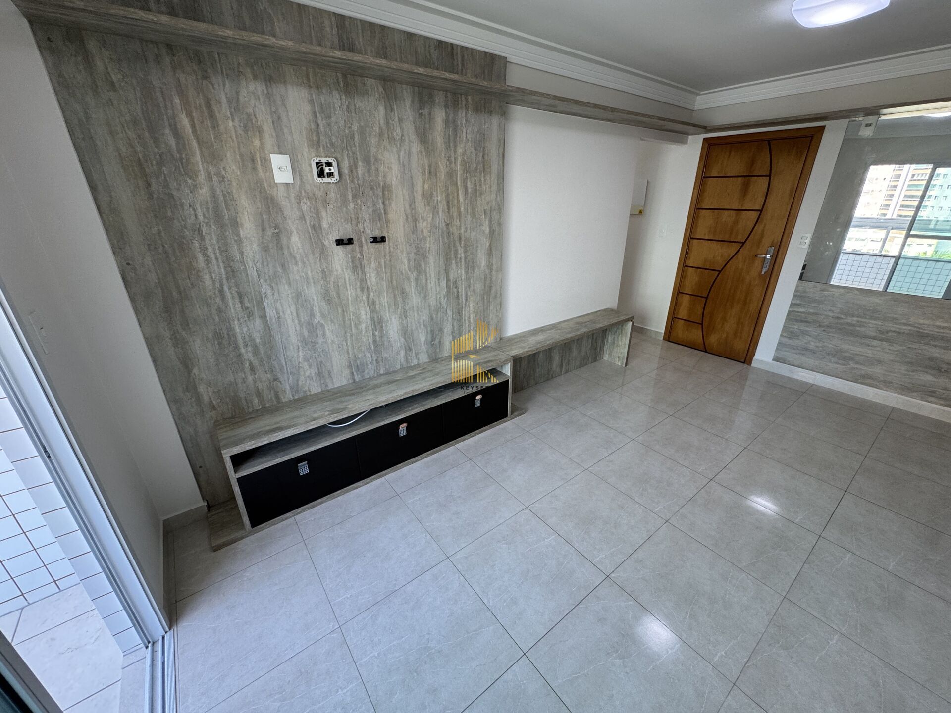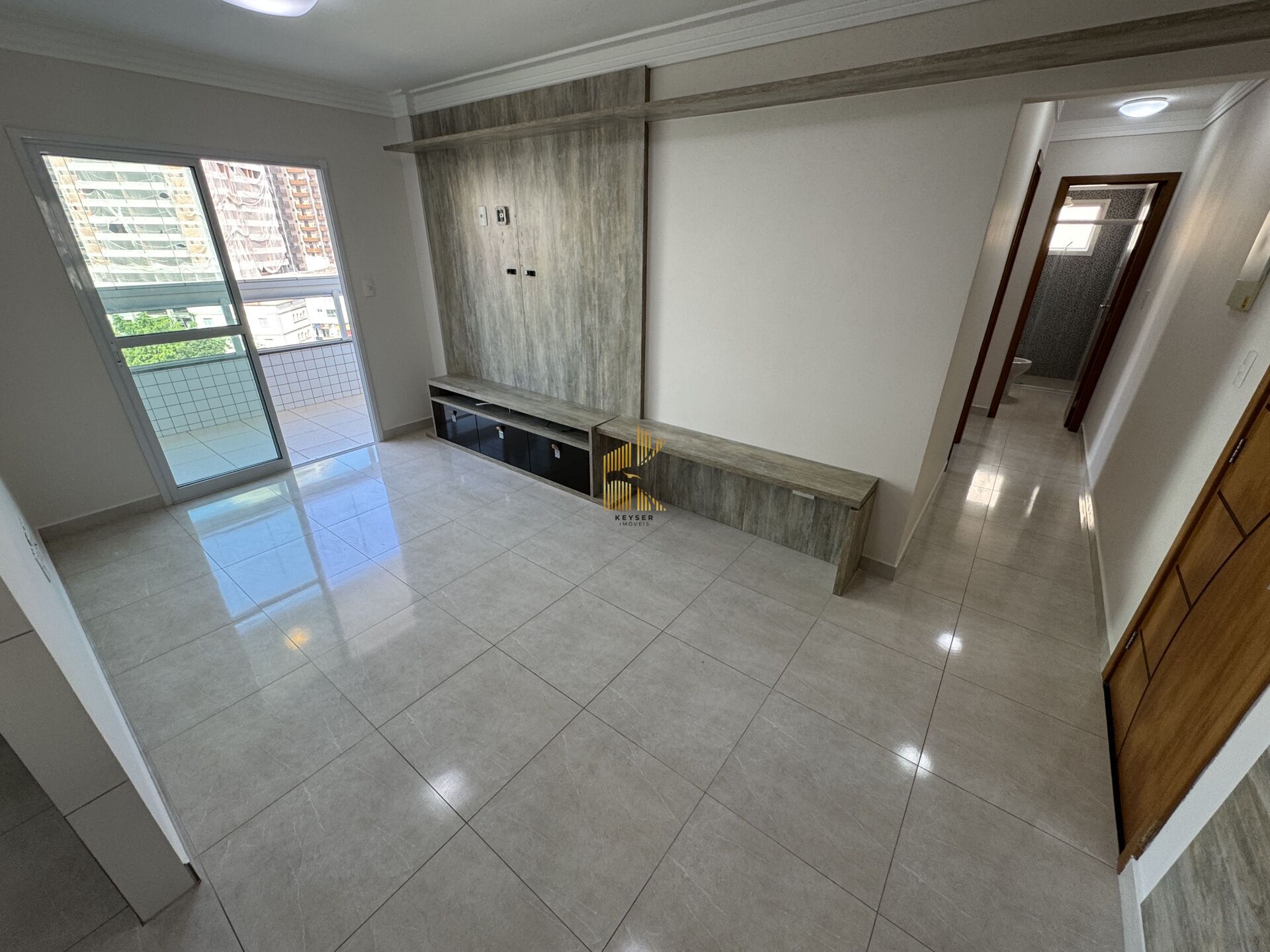 Apartamento à venda no bairro Caiçara em Praia Grande, SP. 2 dormitórios (sendo 1 suíte), sala dois ambientes com sacada envidraçada, cozinha com planejados de alta qualidade, área de serviço, banheiro social e 2 vagas de garagem.