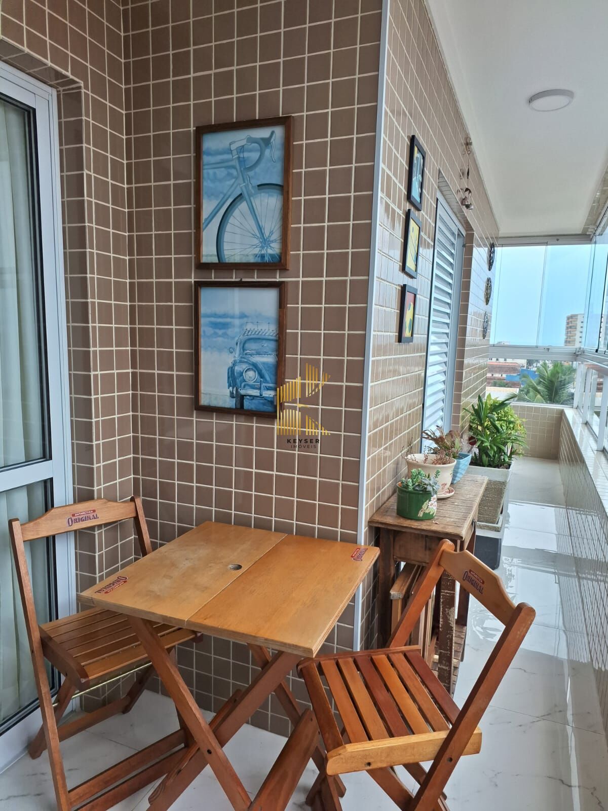 Apartamento à venda no bairro Ocian em Praia Grande, SP. 2 dormitórios (sendo 1 suíte), sala dois ambientes com sacada envidraçada, cozinha com planejados de alta qualidade, área de serviço, banheiro social e uma vaga de garagem.