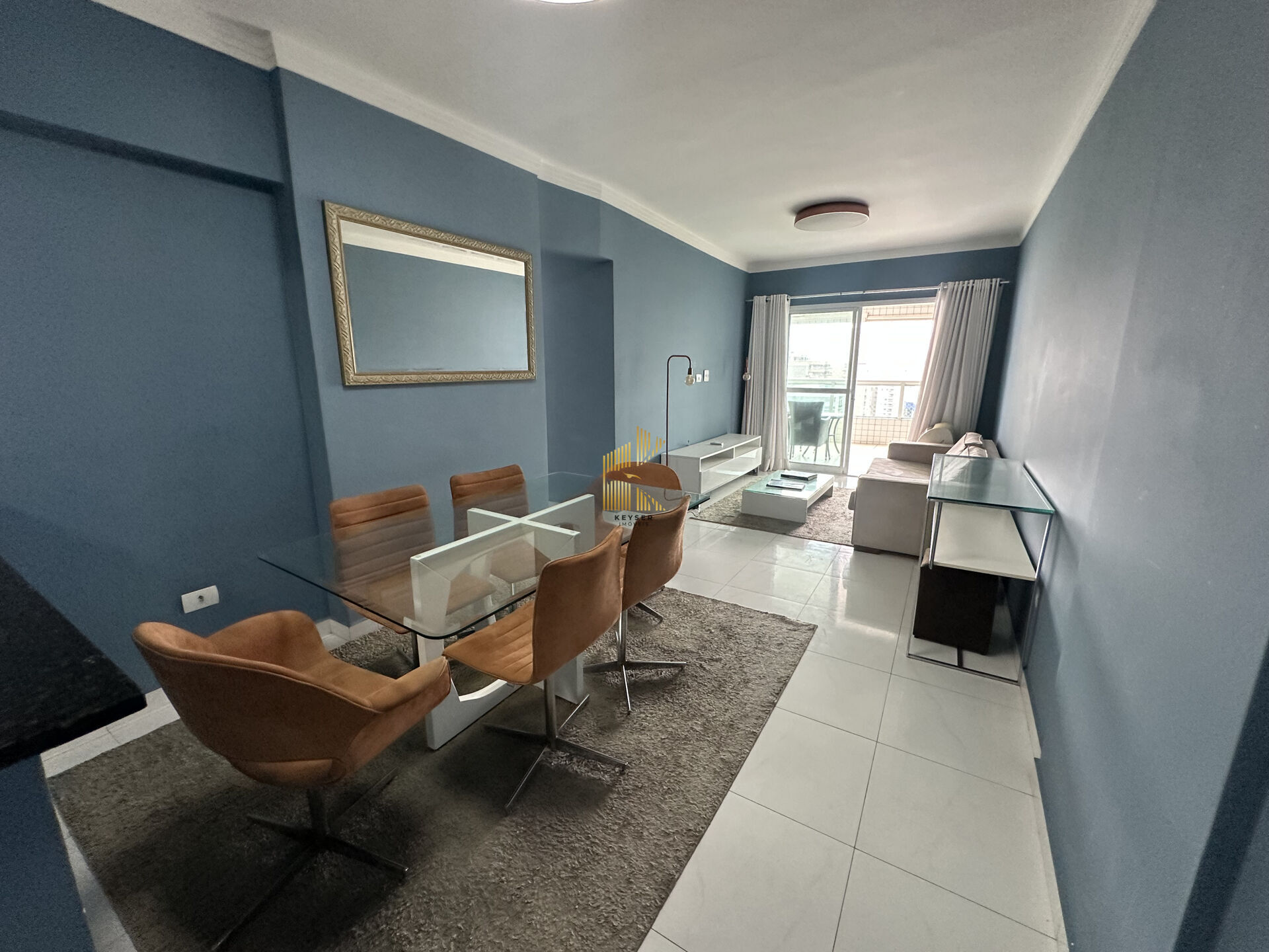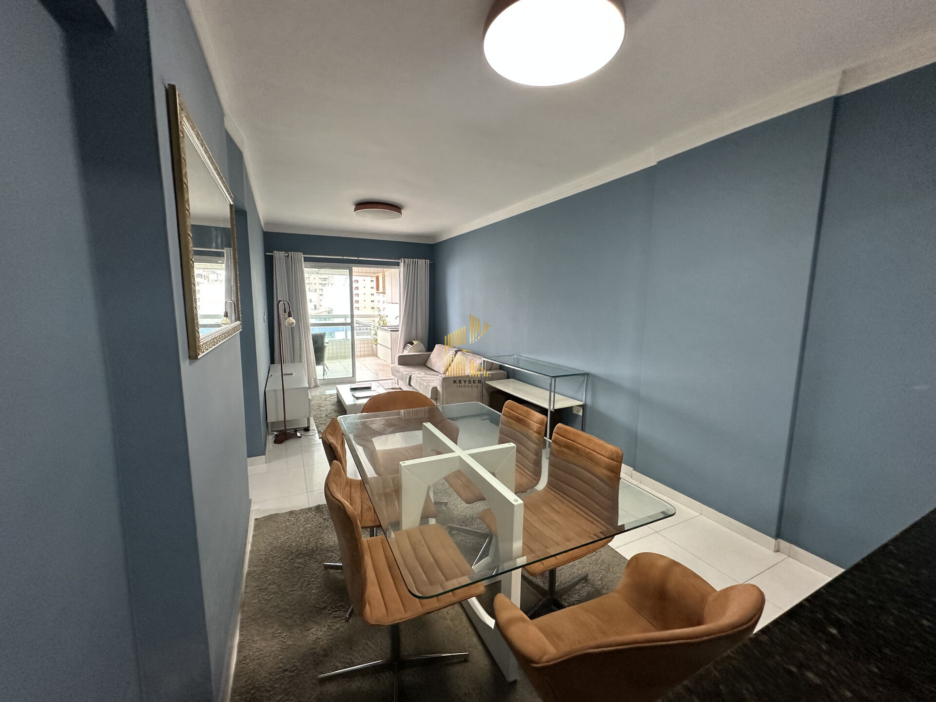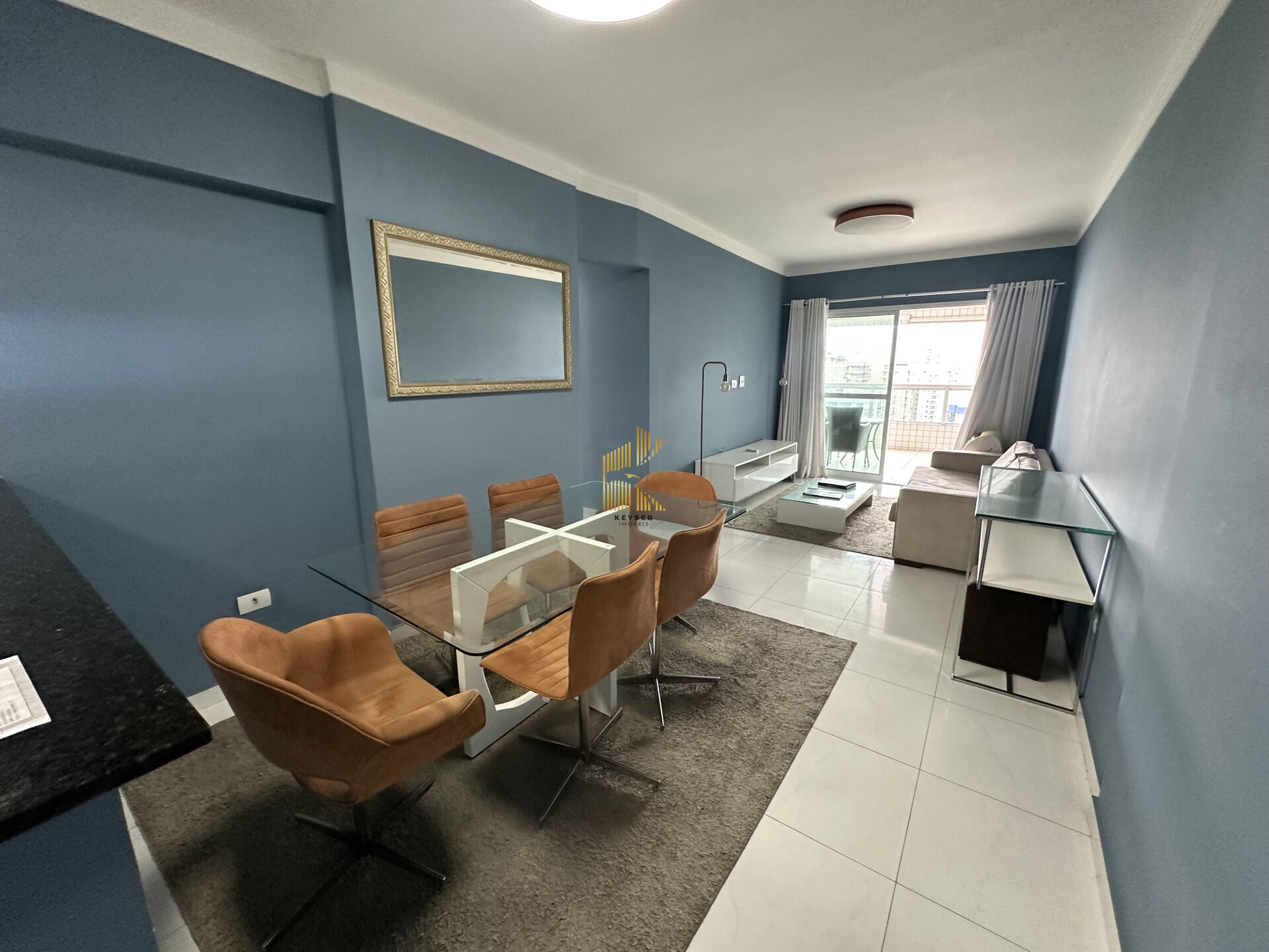 Apartamento à venda no bairro Aviação em Praia Grande, SP. 3 dormitórios sendo 2 suíte, sala dois ambientes com sacada envidraçada, cozinha planejada de alta qualidade, área de serviço, 1 banheiro social e uma vaga de garagem. Fica mobiliado.