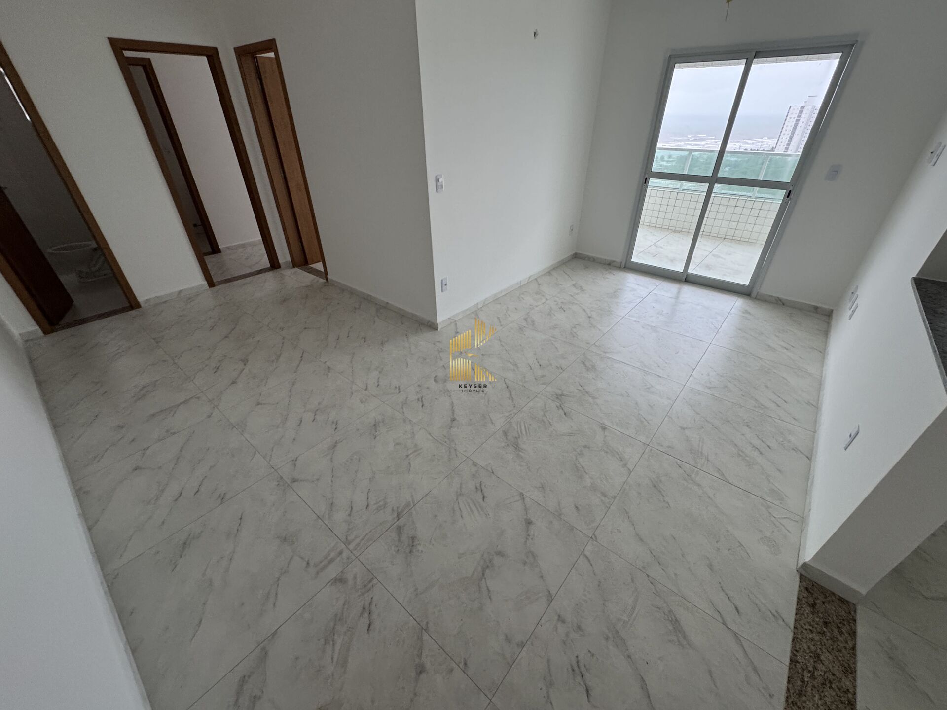 Apartamento à venda no bairro Mirim em Praia Grande, SP. 2 dormitórios (sendo 1 suíte), sala dois ambientes com sacada, cozinha, área de serviço, área técnica, banheiro social e duas vagas de garagem.