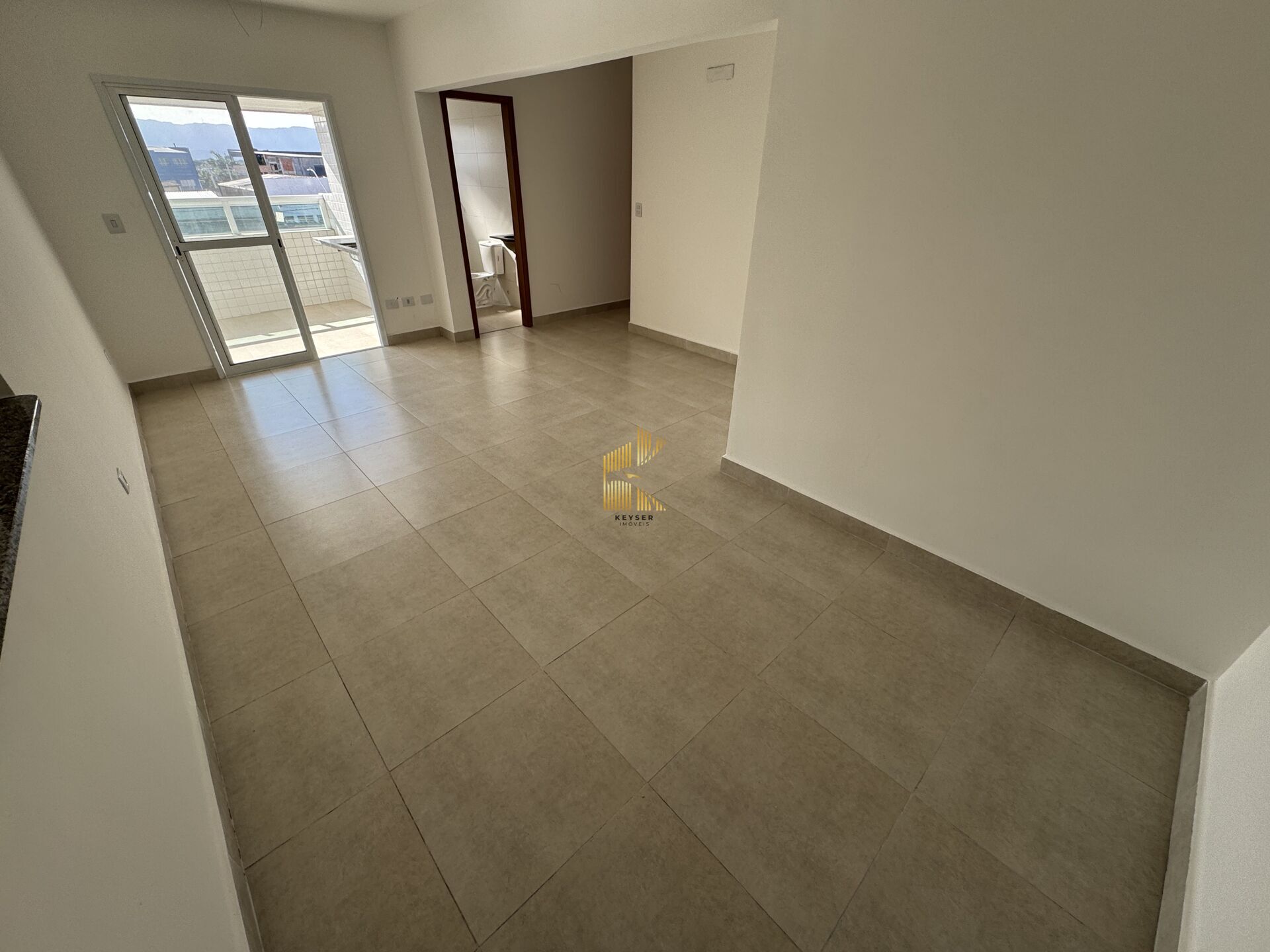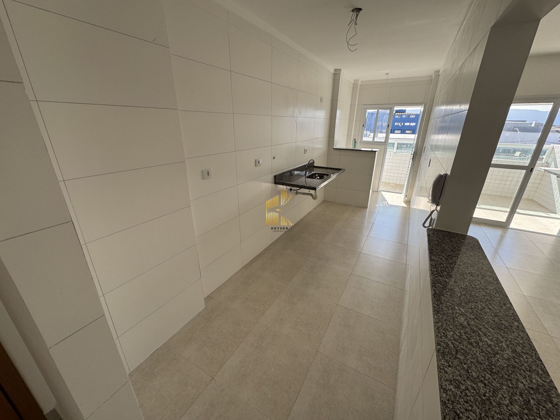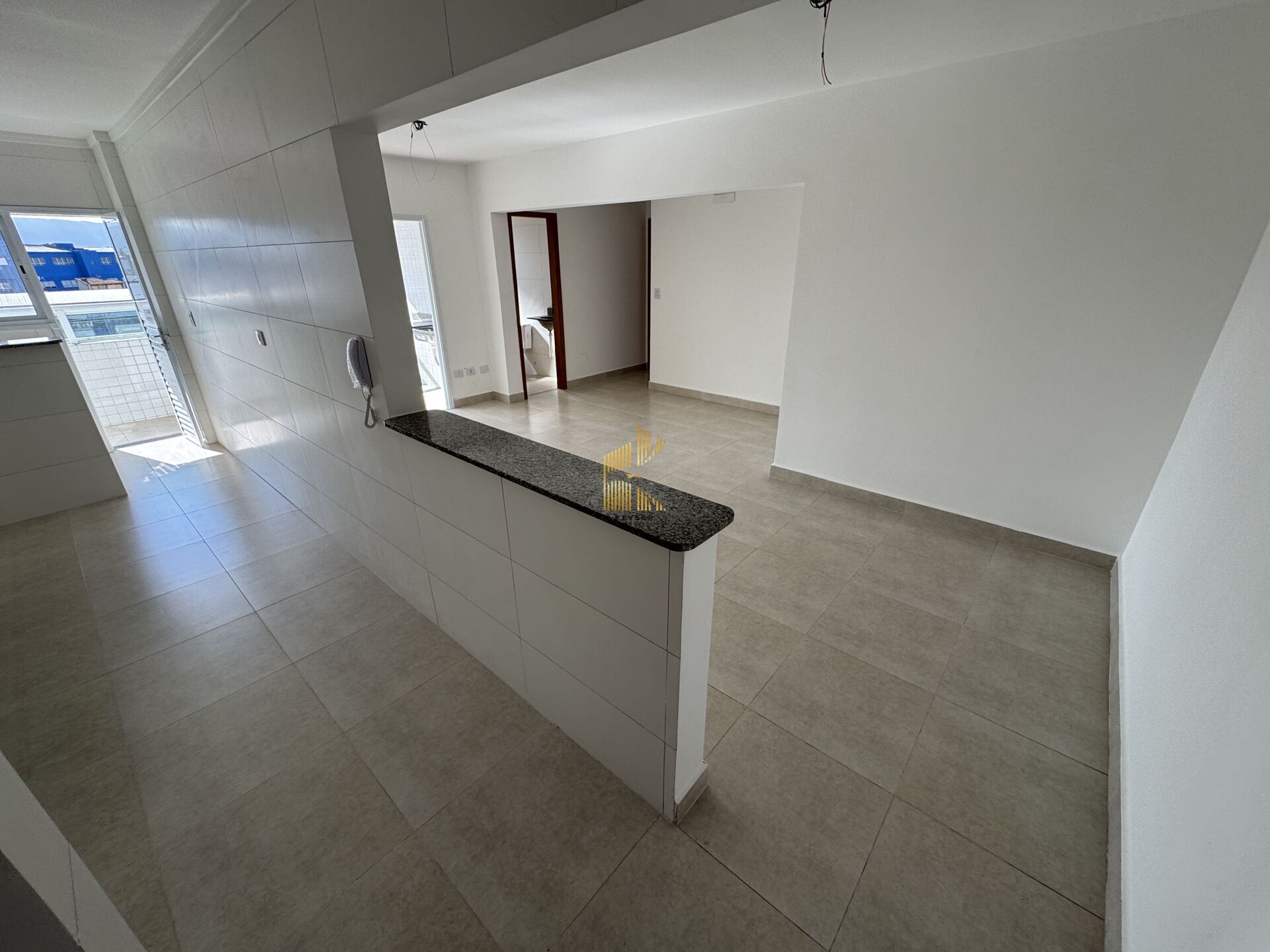 Apartamento à venda no bairro Guilhermina em Praia Grande, SP. 2 dormitórios (sendo 1 suíte), sala dois ambientes com sacada, cozinha, área de serviço, banheiro social e uma vaga de garagem.