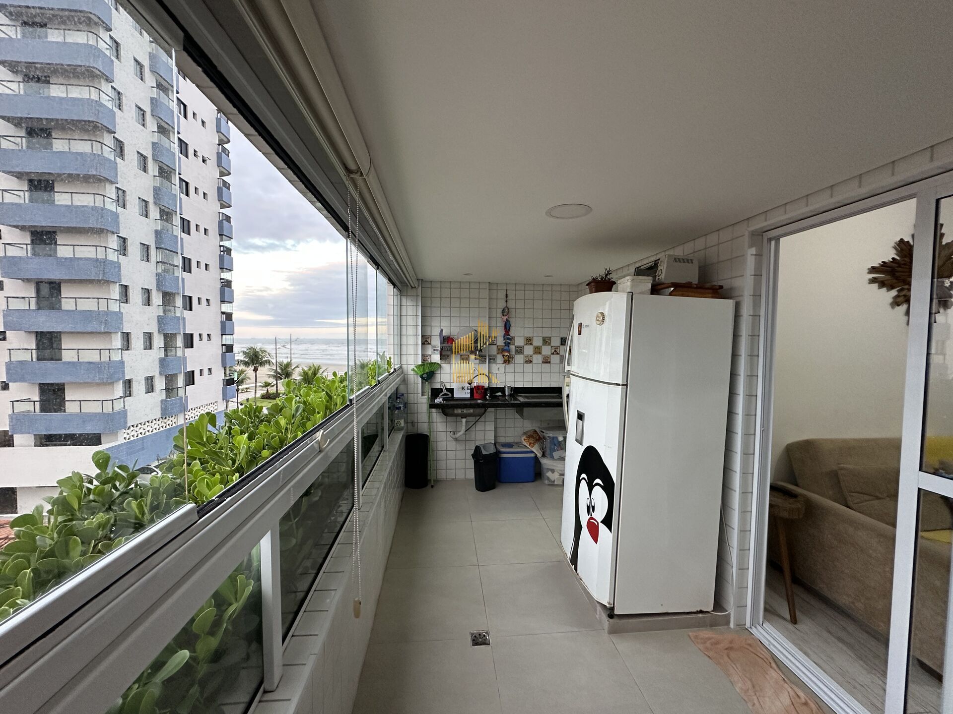 Apartamento Garden vista mar à venda no bairro Maracanã em Praia Grande, SP. 1 dormitório (1 suíte), sala dois ambientes com sacada gourmet envidraçada e com vista para o mar, cozinha planejada de alta qualidade, área de serviço, quintal e banheiro social e uma vaga de garagem. Será vendido Semi Mobiliado!