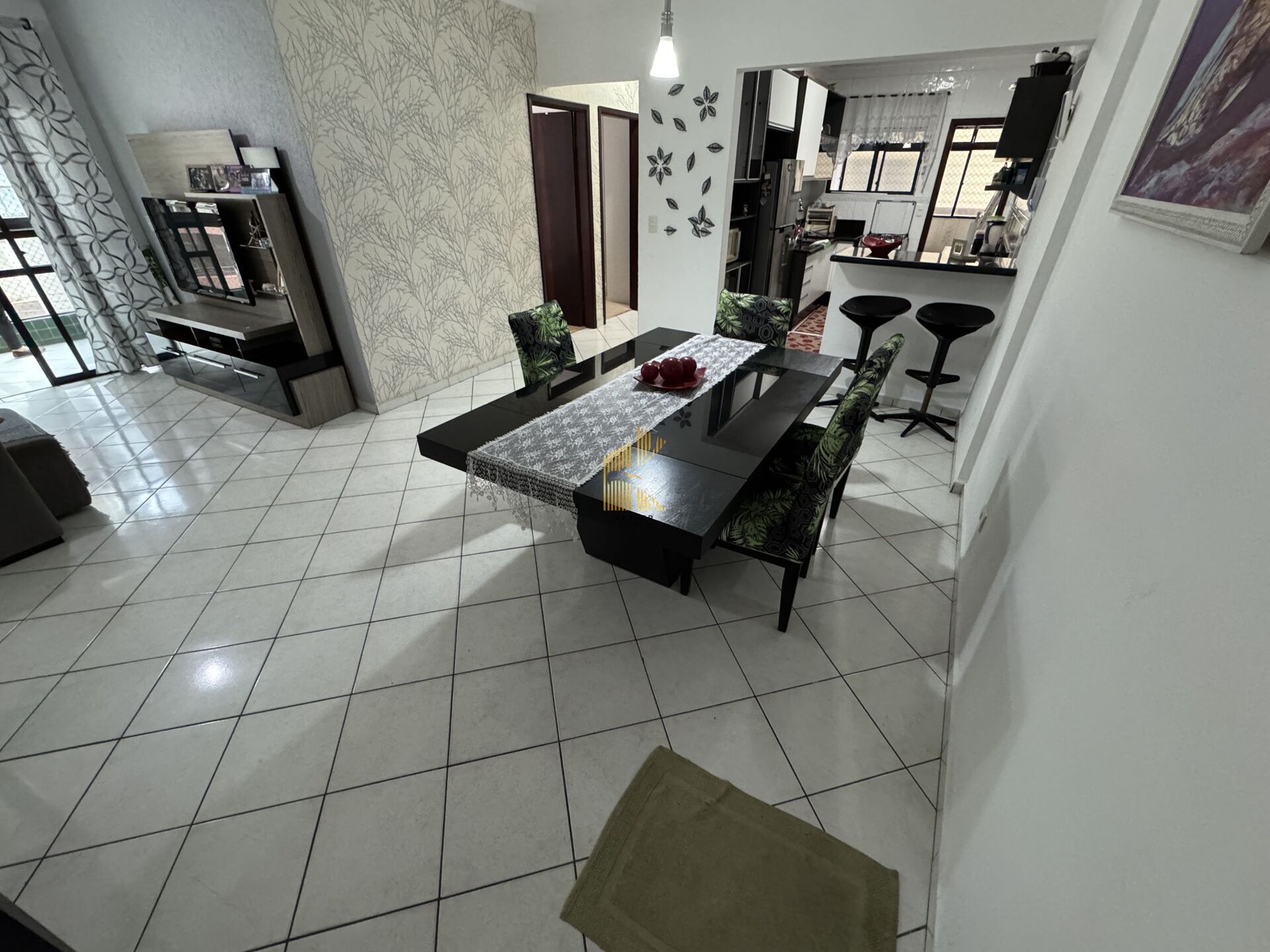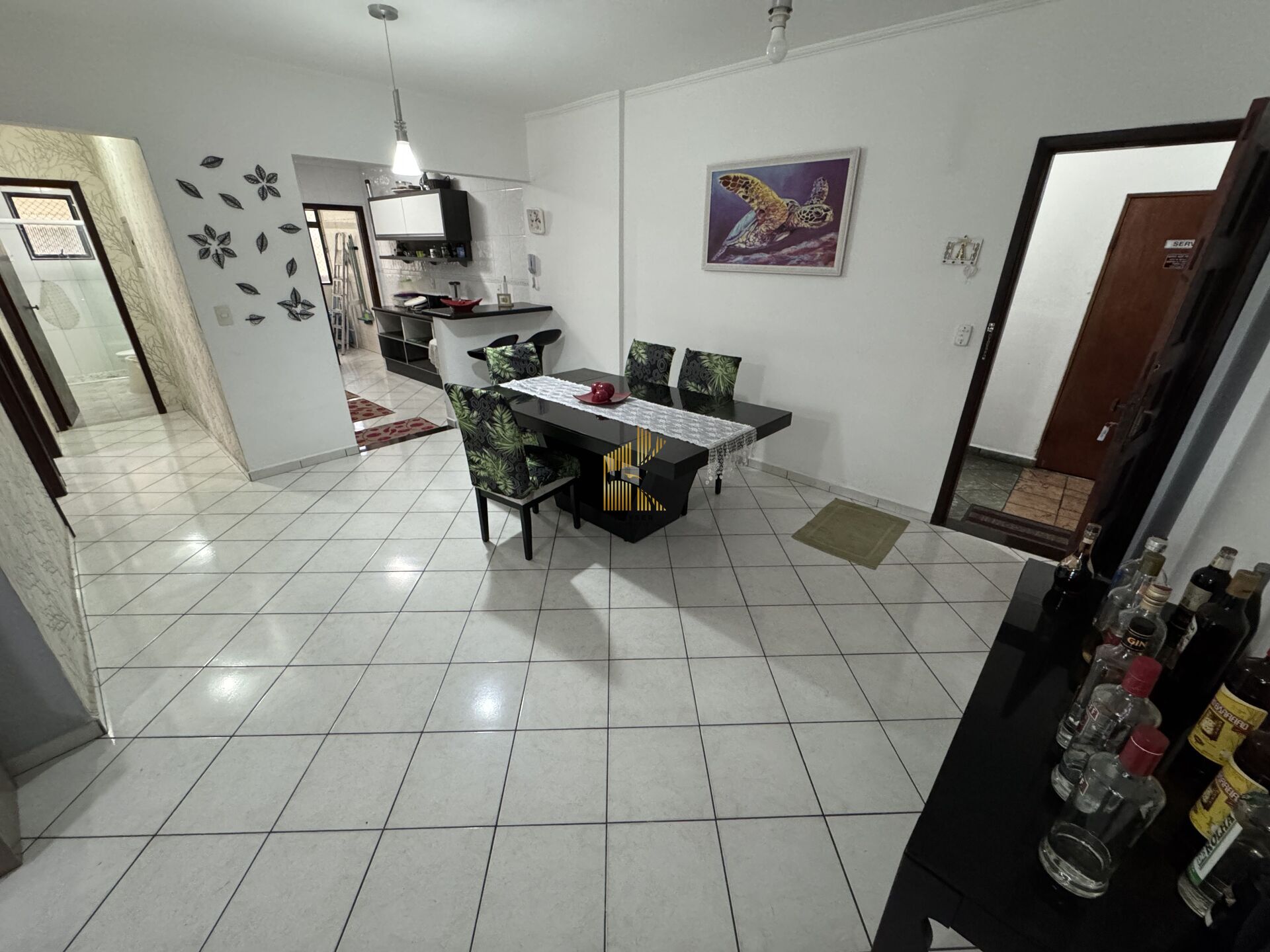 Apartamento à venda no bairro Tupi em Praia Grande, SP. 2 dormitórios sendo 1 suíte, sala dois ambientes com sacada, cozinha, área de serviço, banheiro social e uma vaga de garagem. Será vendido mobiliado.