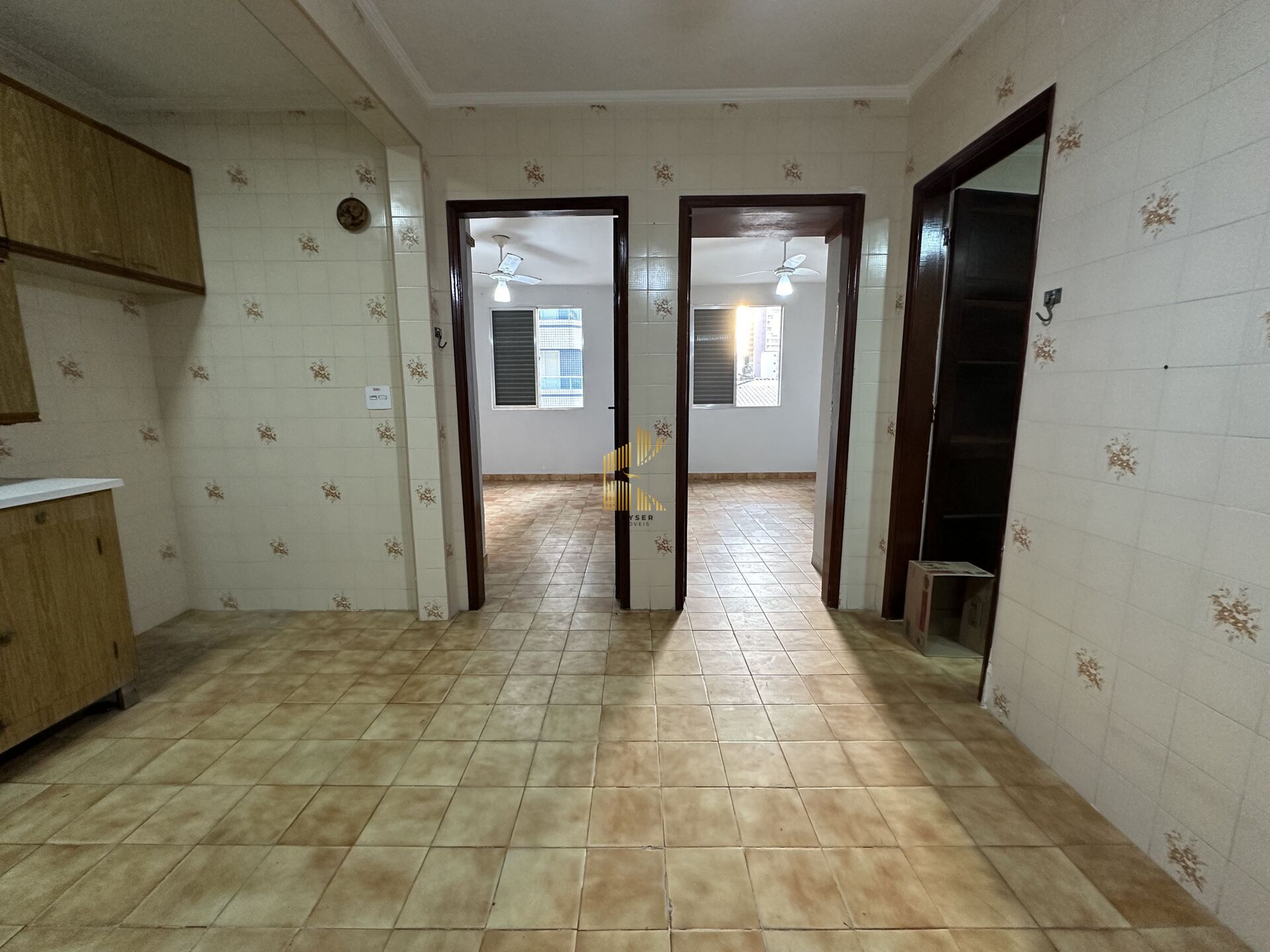 Apartamento à venda no bairro Guilhermina em Praia Grande, SP. 2 dormitórios, sala, cozinha, banheiro social e uma vaga de garagem.