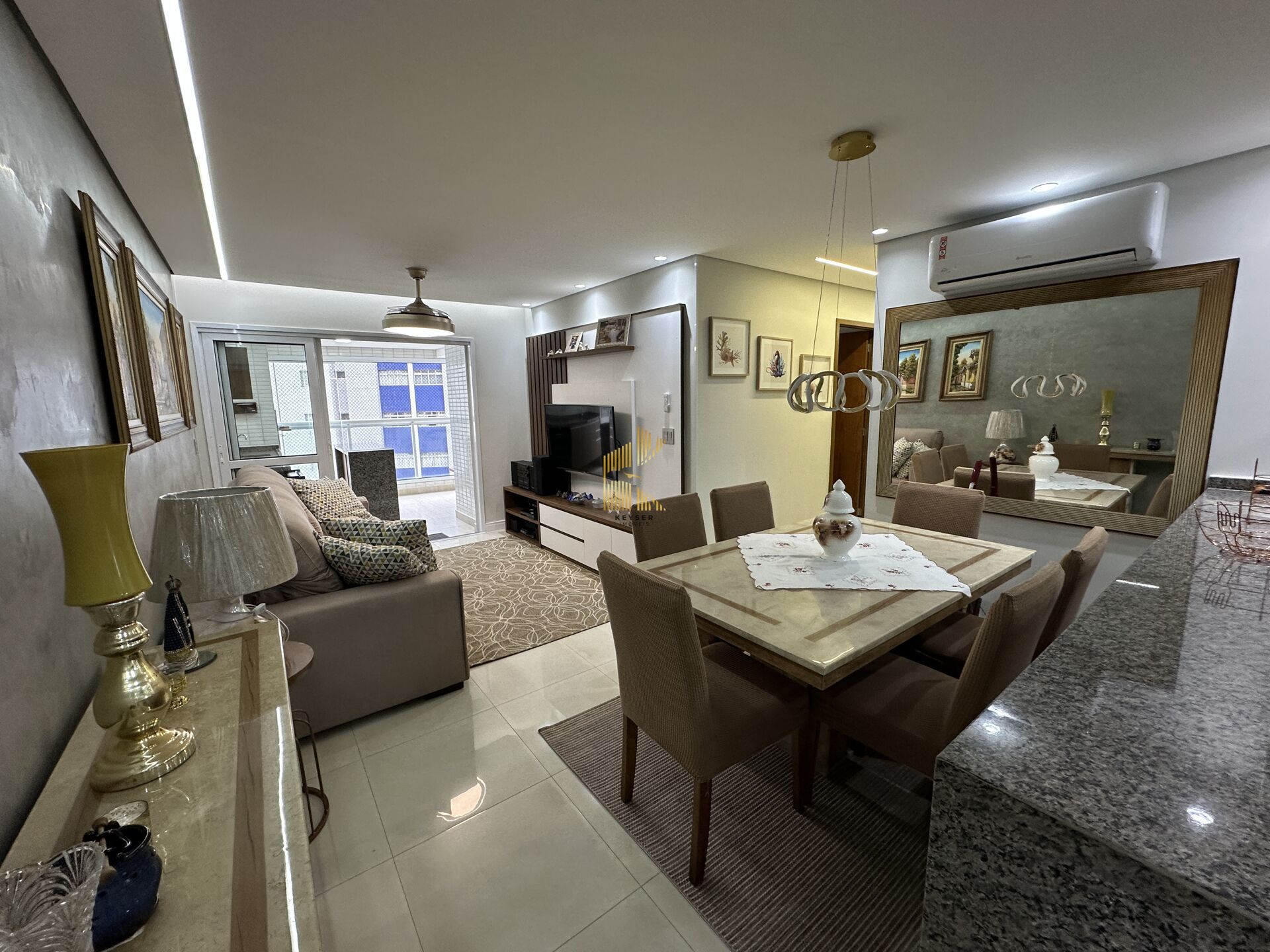 Apartamento à venda no bairro Boqueirão em Praia Grande, SP. 3 dormitórios sendo 2 suíte, sala dois ambientes com sacada envidraçada, cozinha planejada, área de serviço, banheiro social e duas vagas de garagem. Será vendido mobiliado.