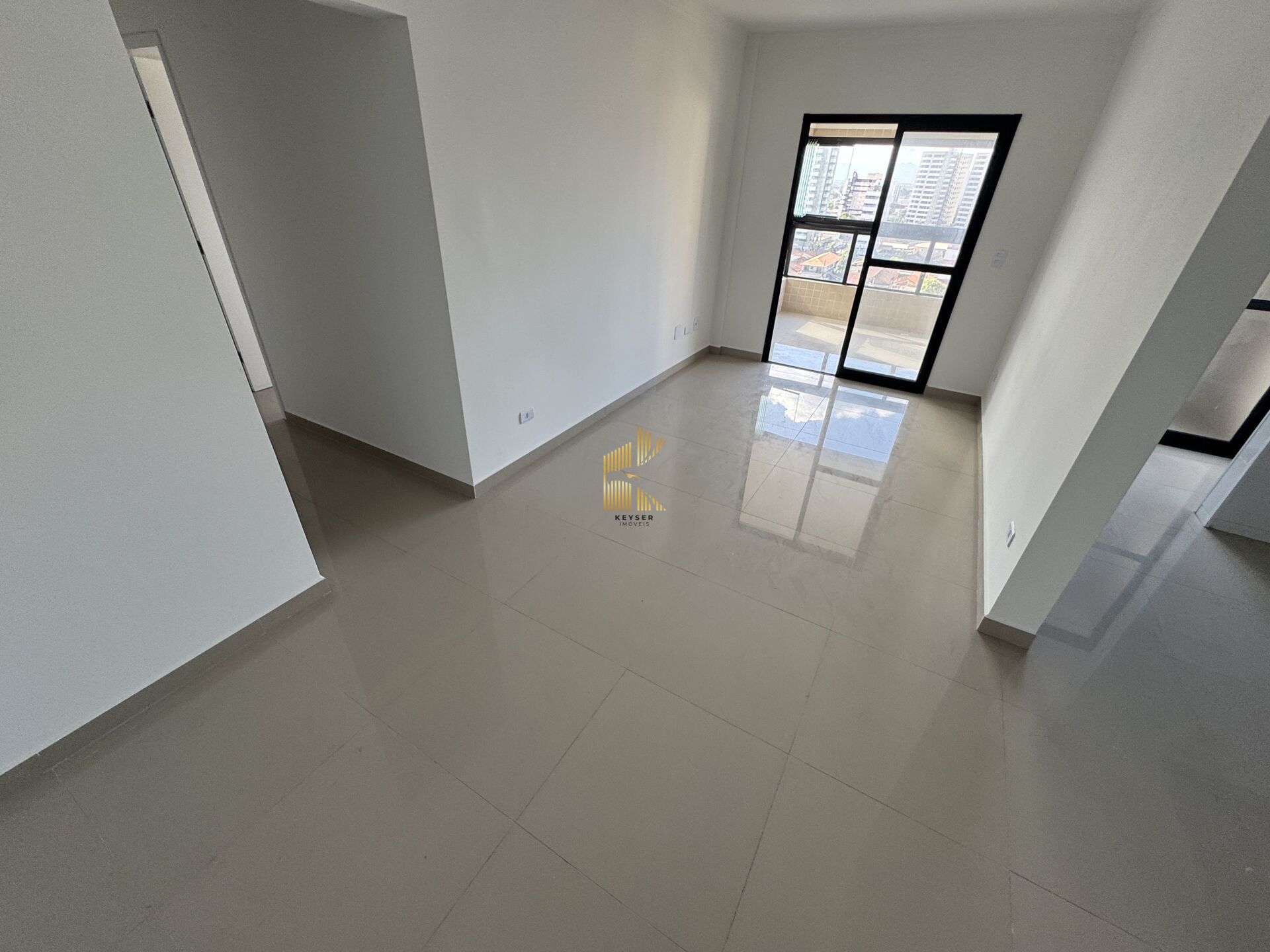 Apartamento à venda no bairro Mirim em Praia Grande, SP. 2 dormitórios (sendo 1 suíte), sala dois ambientes com sacada envidraçada, cozinha, área de serviço, área técnica, banheiro social e uma vaga de garagem.