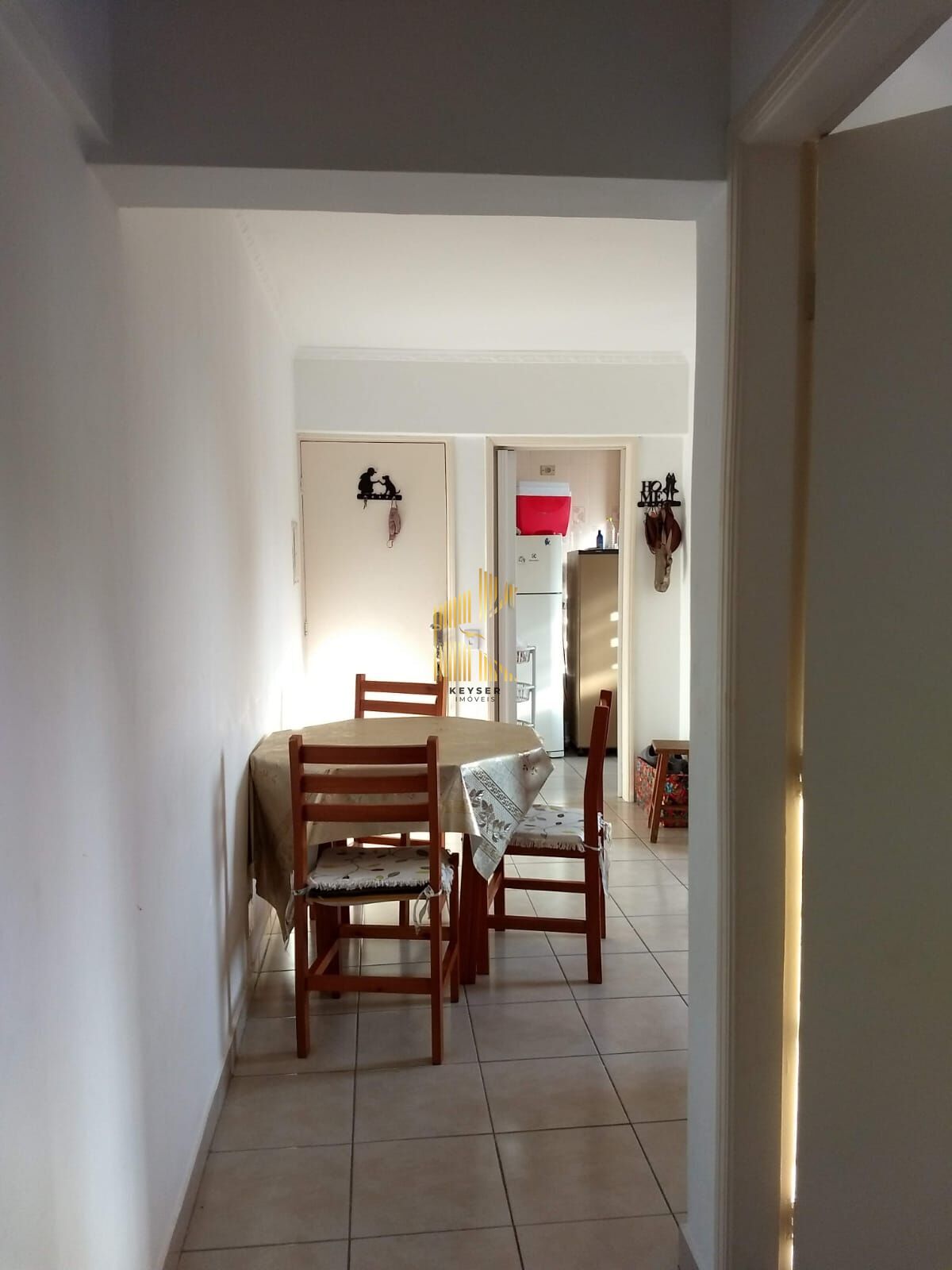 Apartamento à venda no bairro Caiçara em Praia Grande, SP. 2 dormitórios, sala, cozinha, área de serviço, 1 banheiro social e uma vaga de garagem.