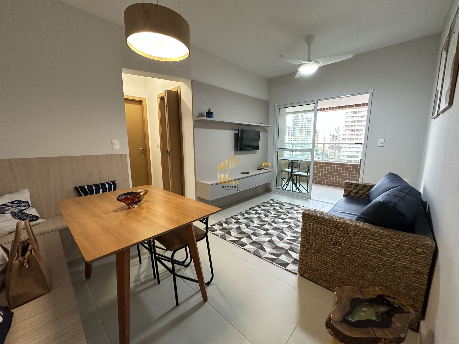Apartamento mobiliado e decorado à venda no bairro Aviação em Praia Grande, SP. 2 dormitórios (sendo 1 suíte)