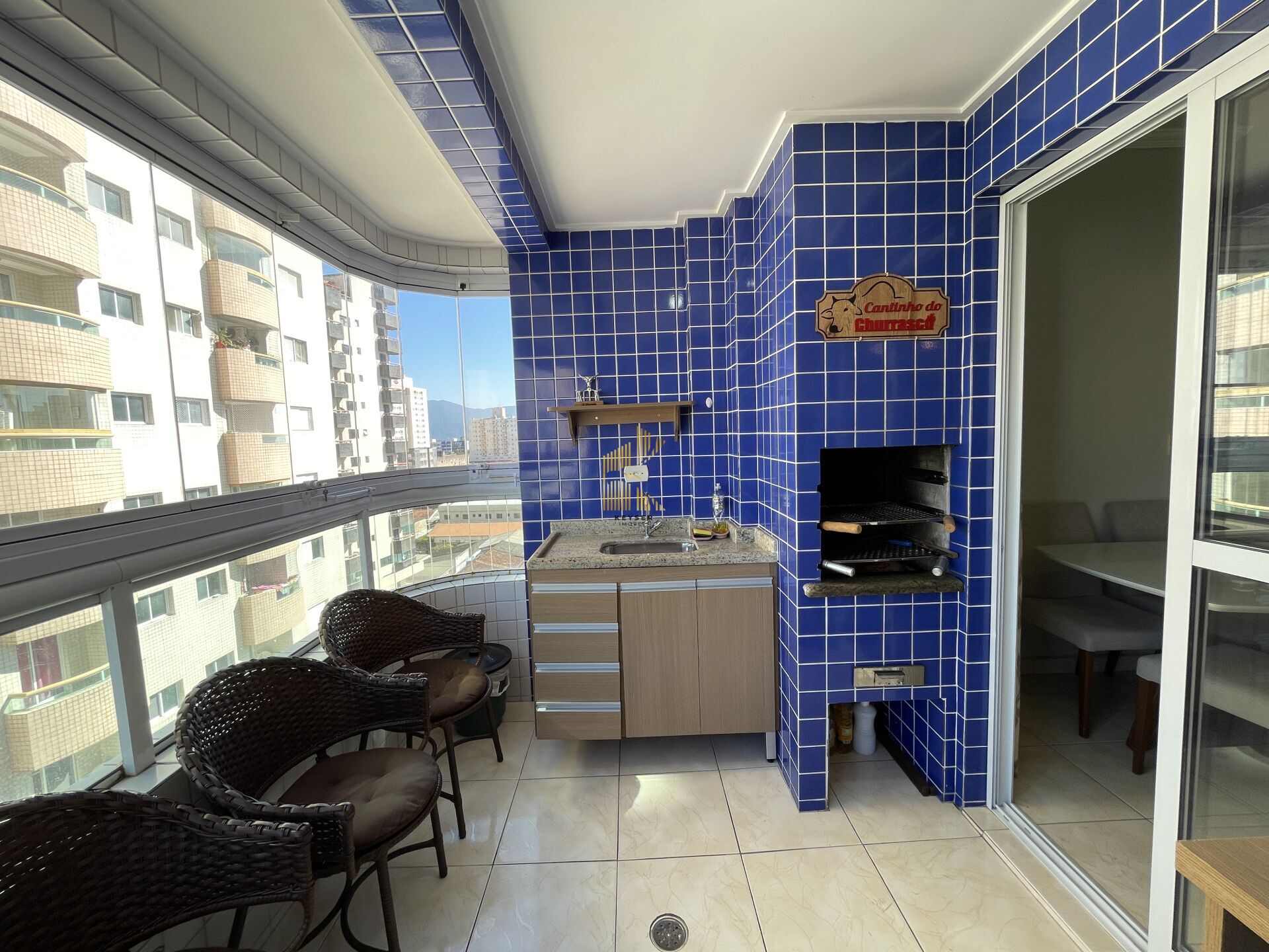 Apartamento à venda no bairro Aviação em Praia Grande, SP. 3 dormitórios (sendo 1 suíte), 2 dormitórios com sacada, com vista para o pôr o sol, sala dois ambientes com sacada envidraçada, com churrasqueira á carvão, cozinha planejada de alta qualidade, área de serviço, banheiro social e 2 vagas de garagem. Será vendido Semi-Mobiliado! Lazer Completo no Prédio!