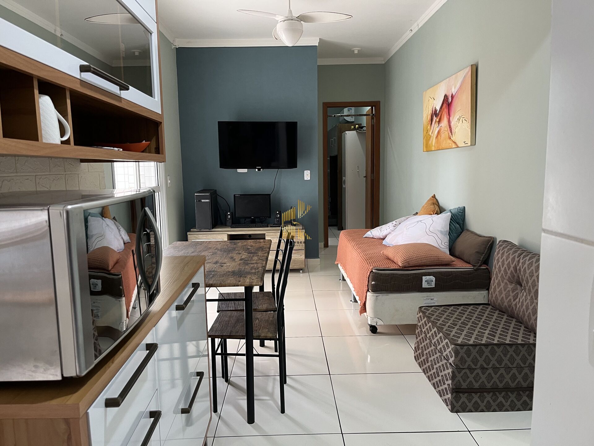 1 Dormitório, sendo 1 suíte1 Banheiro1 Vaga1 Sala de TV1 Cozinha1 Sala de jantar1 Área de serviço