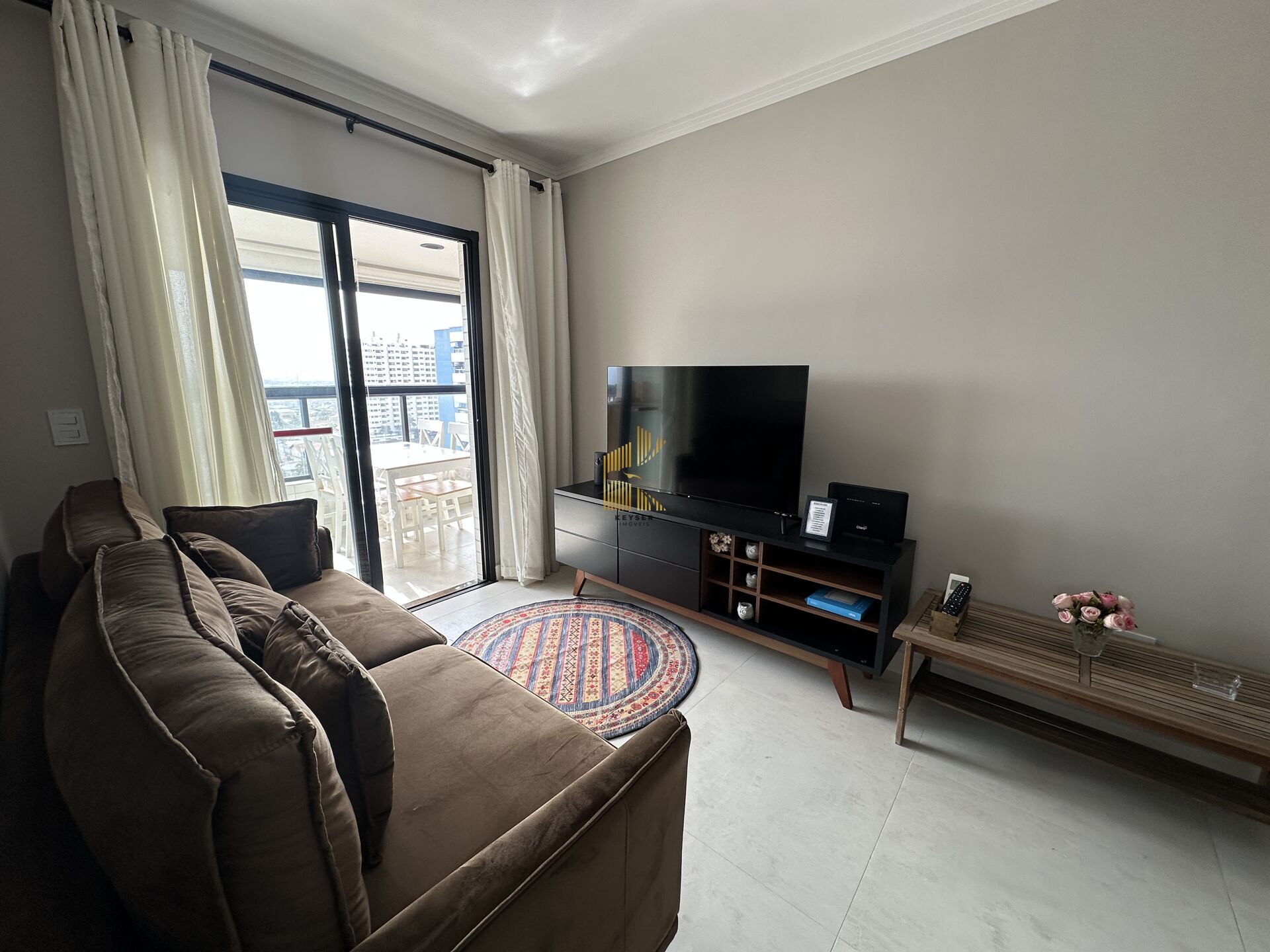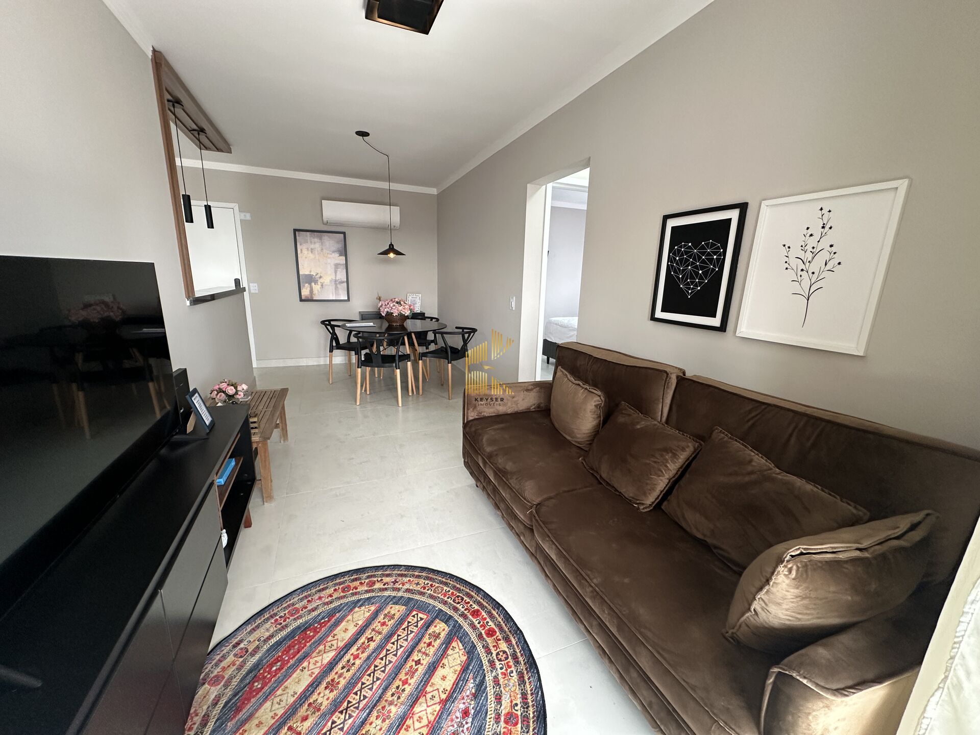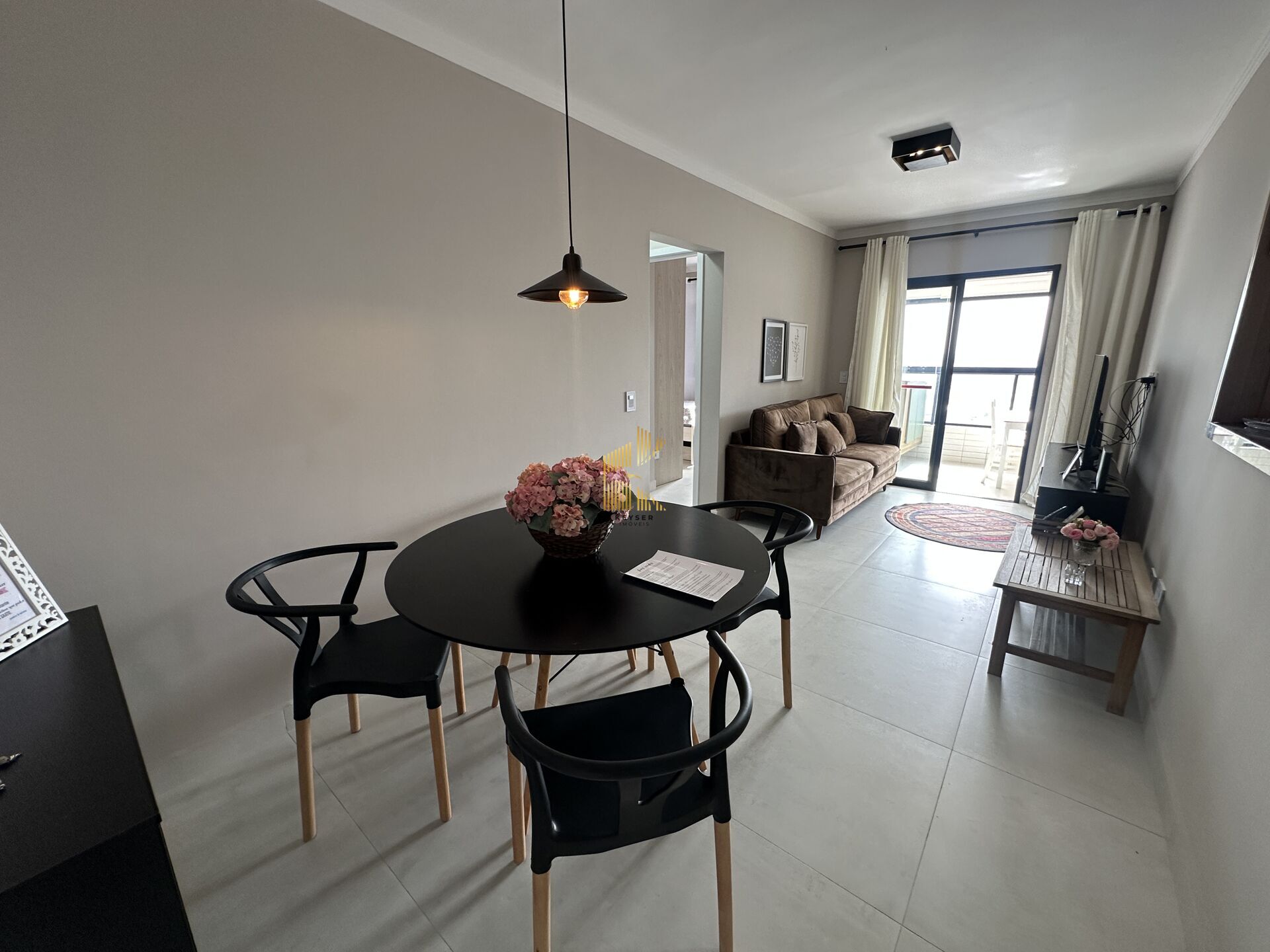 Apartamento à venda no bairro Maracanã em Praia Grande, SP. 2 dormitórios sendo 1 suíte, sala dois ambientes, cozinha, área de serviço, banheiro social e uma vaga de garagem. Será vendido mobiliado.
