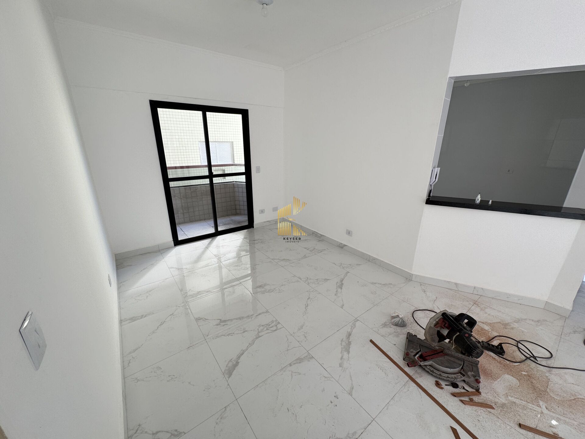 Apartamento à venda no bairro Guilhermina em Praia Grande, SP. 3 dormitórios (sendo 1 suíte), sala, cozinha, área de serviço, banheiro social e 2 vagas de garagem coletivas.