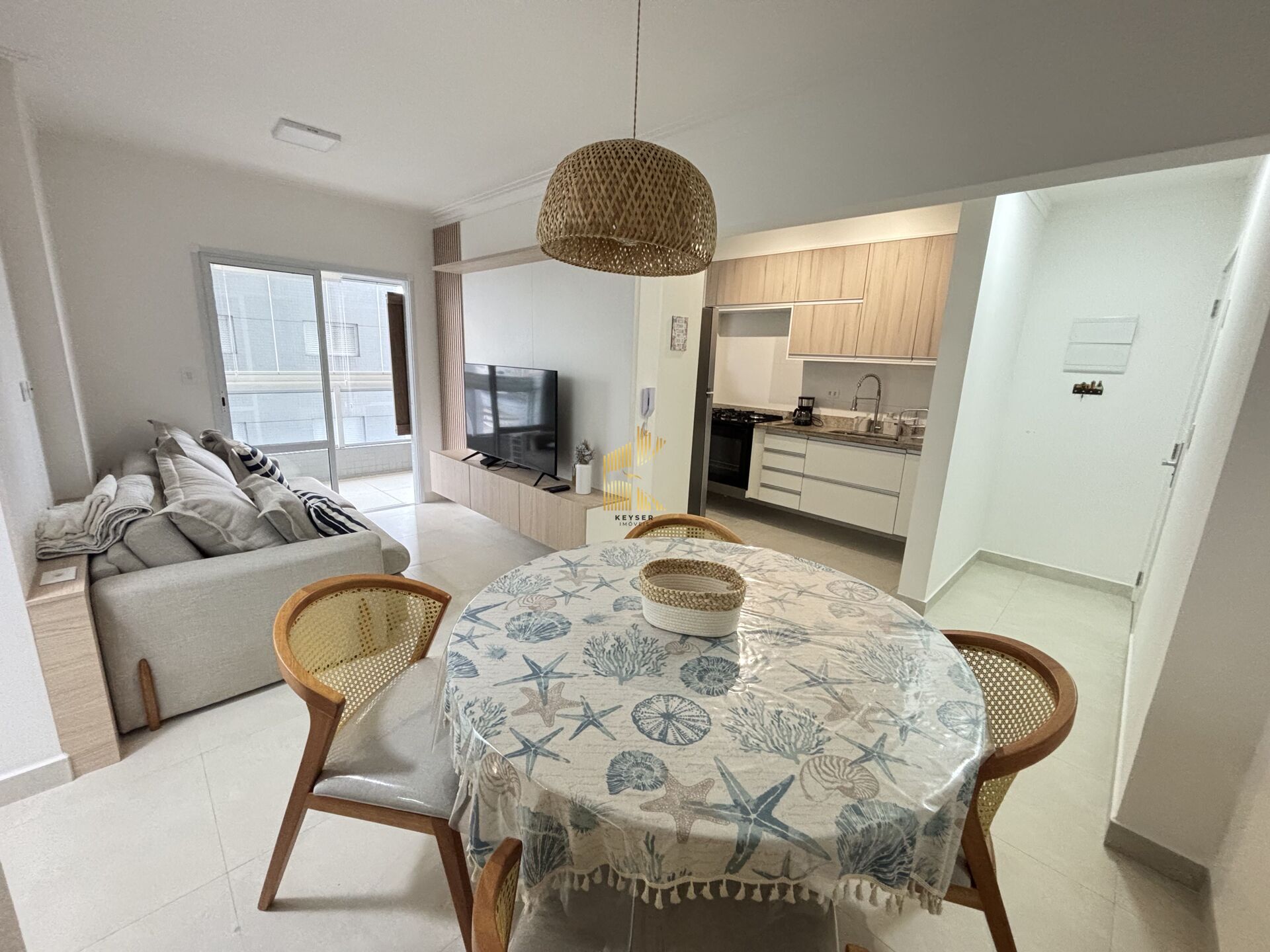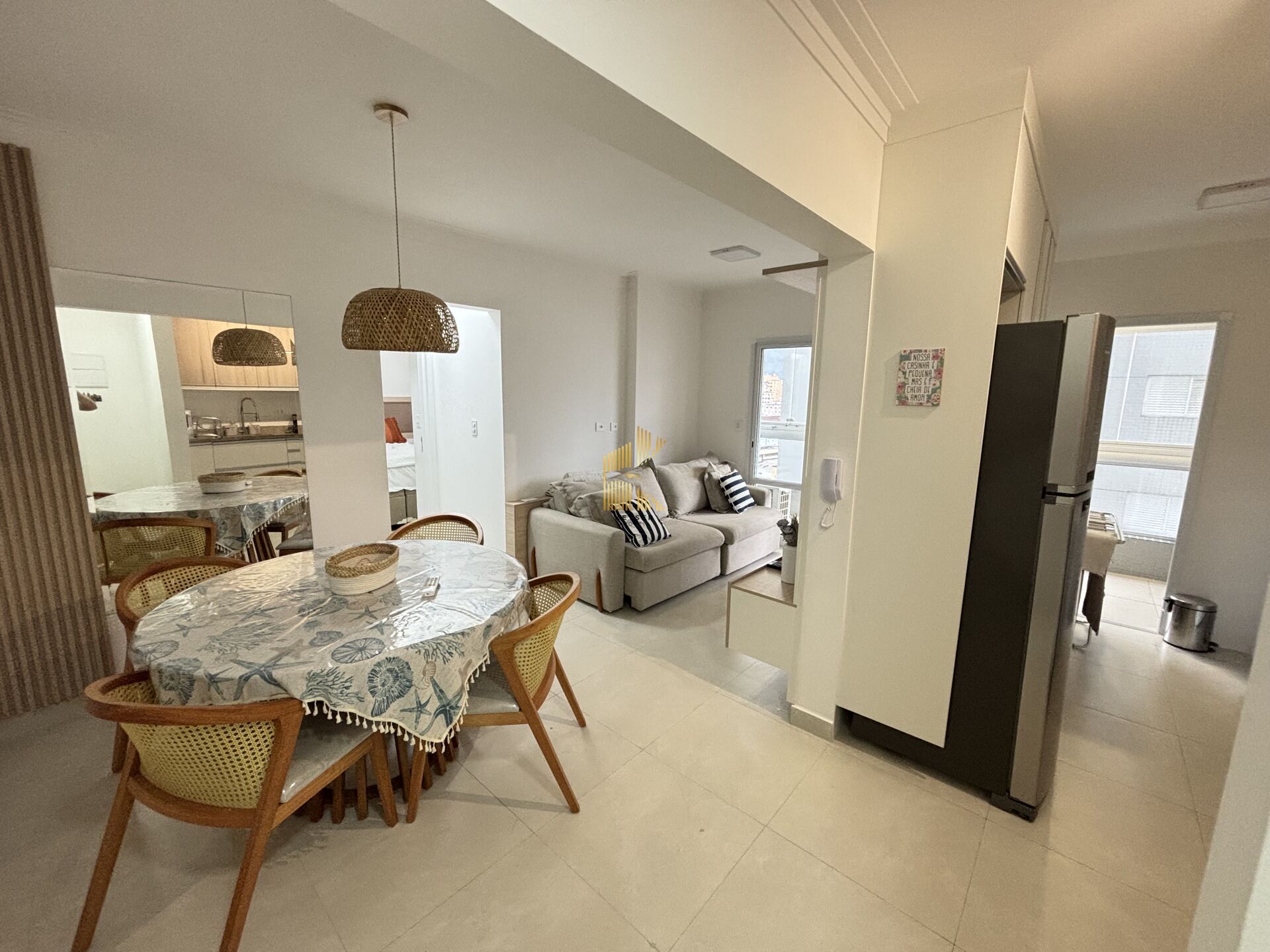 Apartamento à venda no bairro Boqueirão em Praia Grande, SP. 1 dormitório sendo suíte, sala dois ambientes com sacada envidraçada, cozinha planejada, área de serviço, banheiro social e uma vaga de garagem.