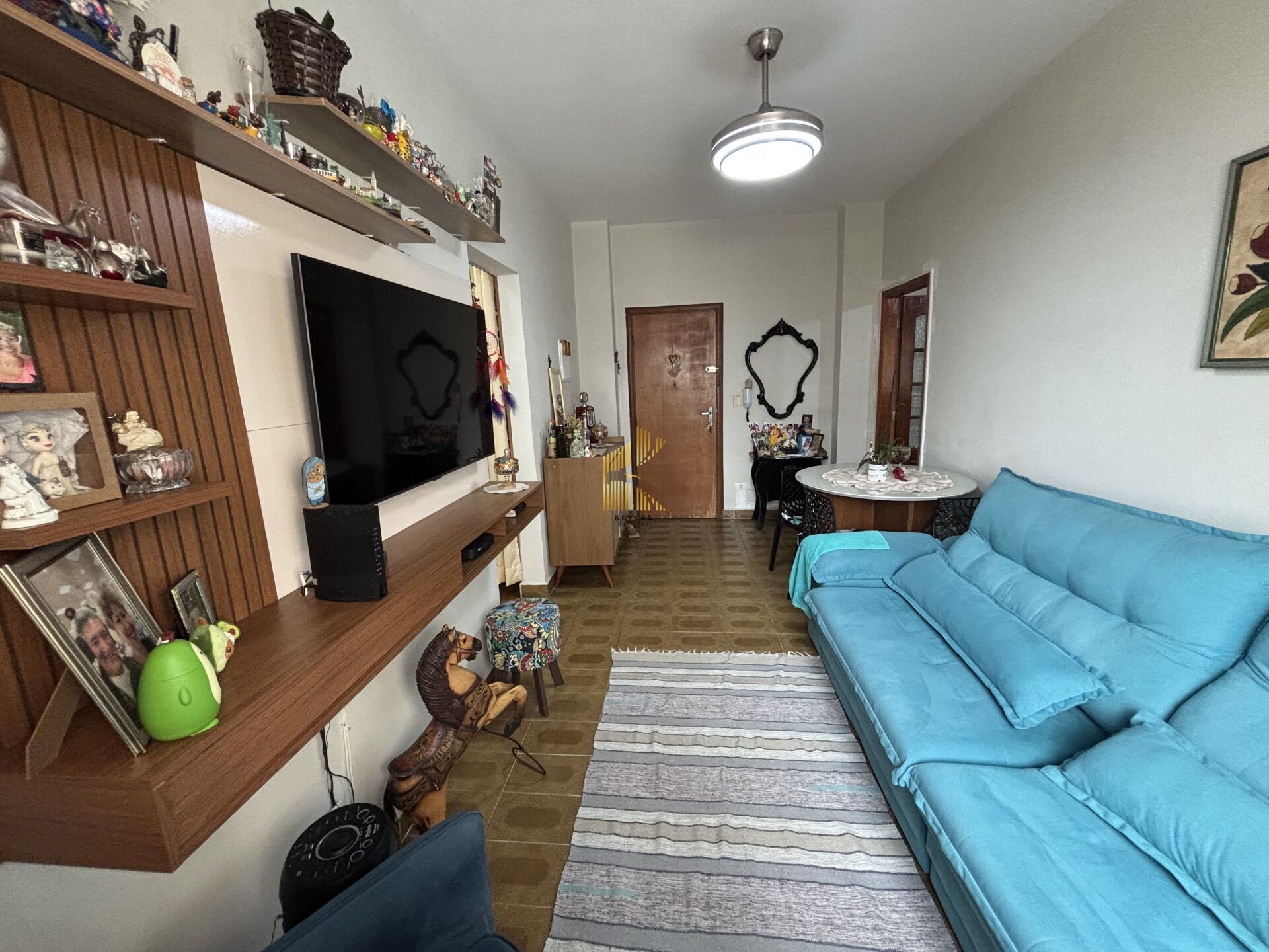 Apartamento à venda no bairro Aviação em Praia Grande, SP. 1 dormitórios, sala dois ambientes com vista livre, cozinha, área de serviço, banheiro social e uma vaga de garagem.