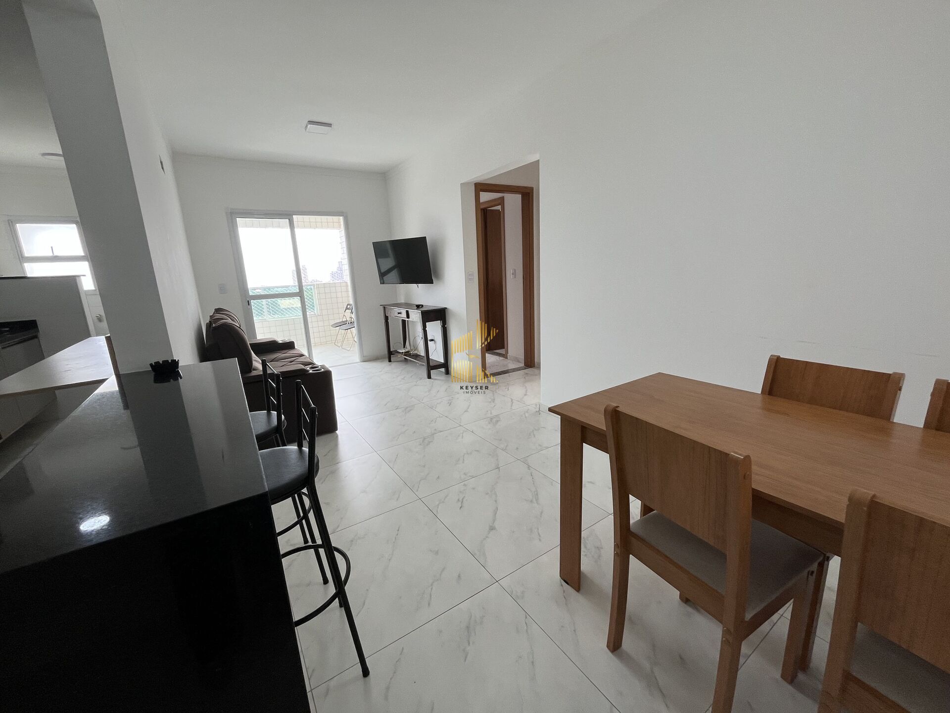 Apartamento à venda no bairro Mirim em Praia Grande, SP. 2 dormitórios (sendo 1 suíte), sala dois ambientes com sacada , cozinha, área de serviço, banheiro social e uma vaga de garagem.