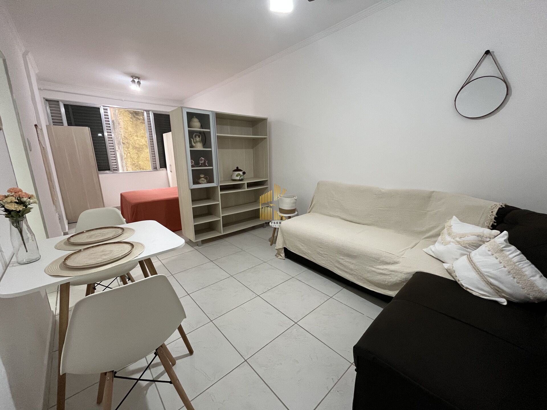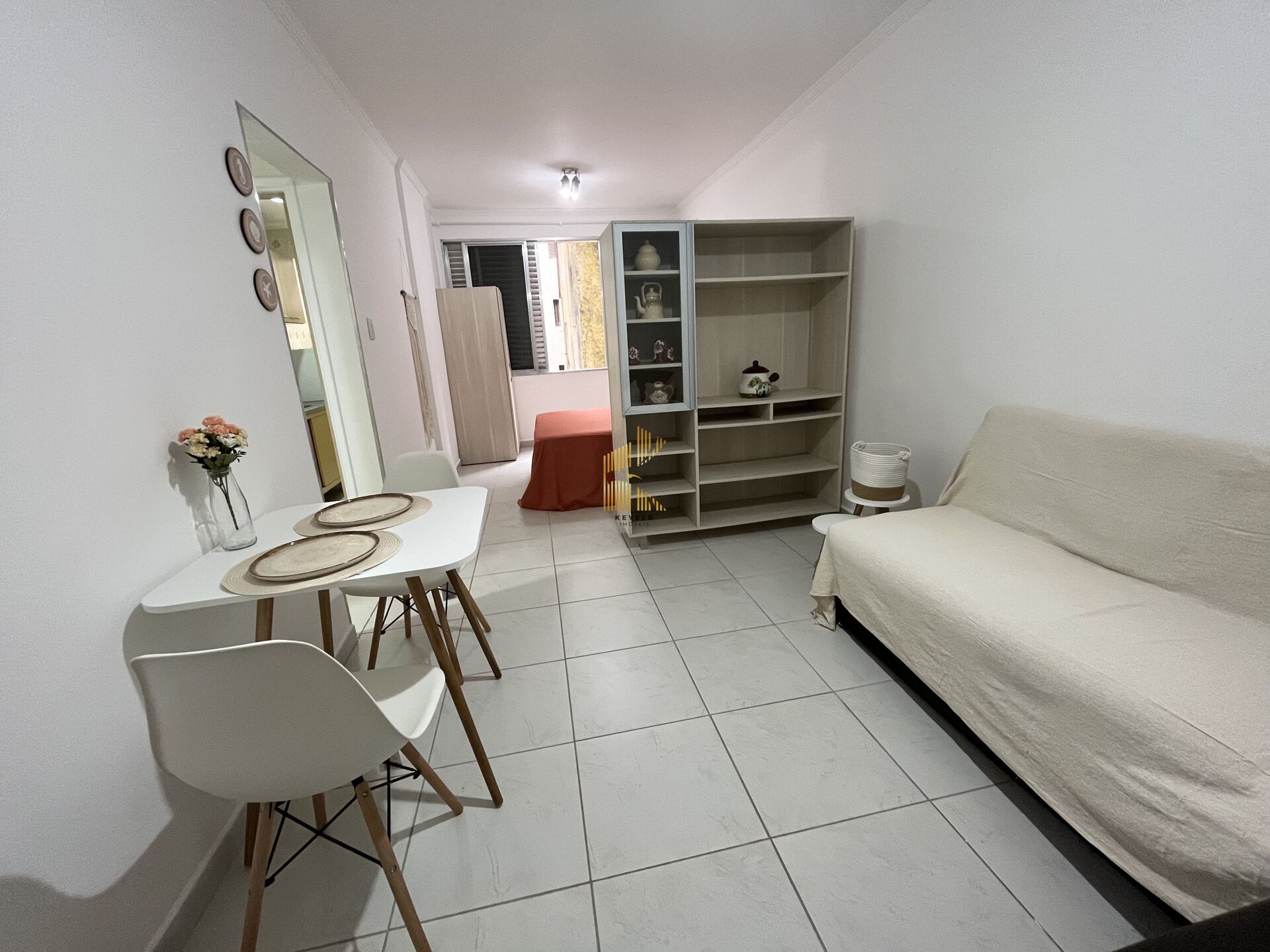 Kitnet vista mar à venda no bairro Guilhermina em Praia Grande, SP. 1 dormitório/sala , cozinha, banheiro e 1 vaga de garagem coletiva.