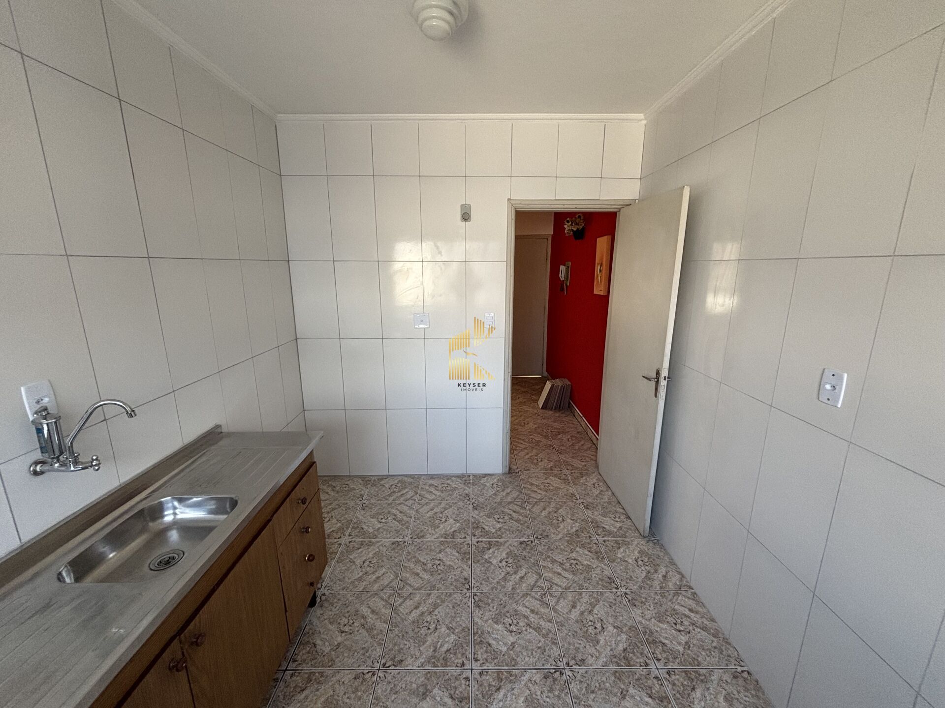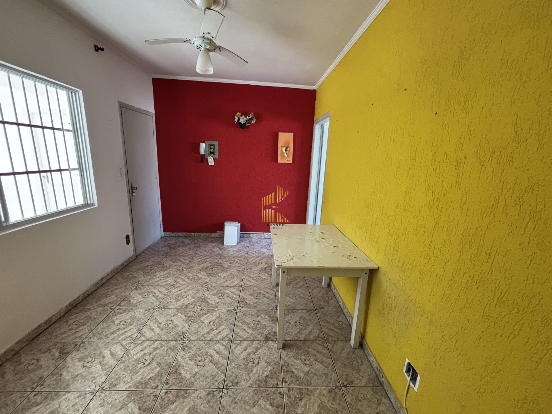 Apartamento à venda no bairro Guilhermina em Praia Grande, SP. 1 dormitório, sala, cozinha ampla, área de serviço, banheiro social e uma vaga de garagem.