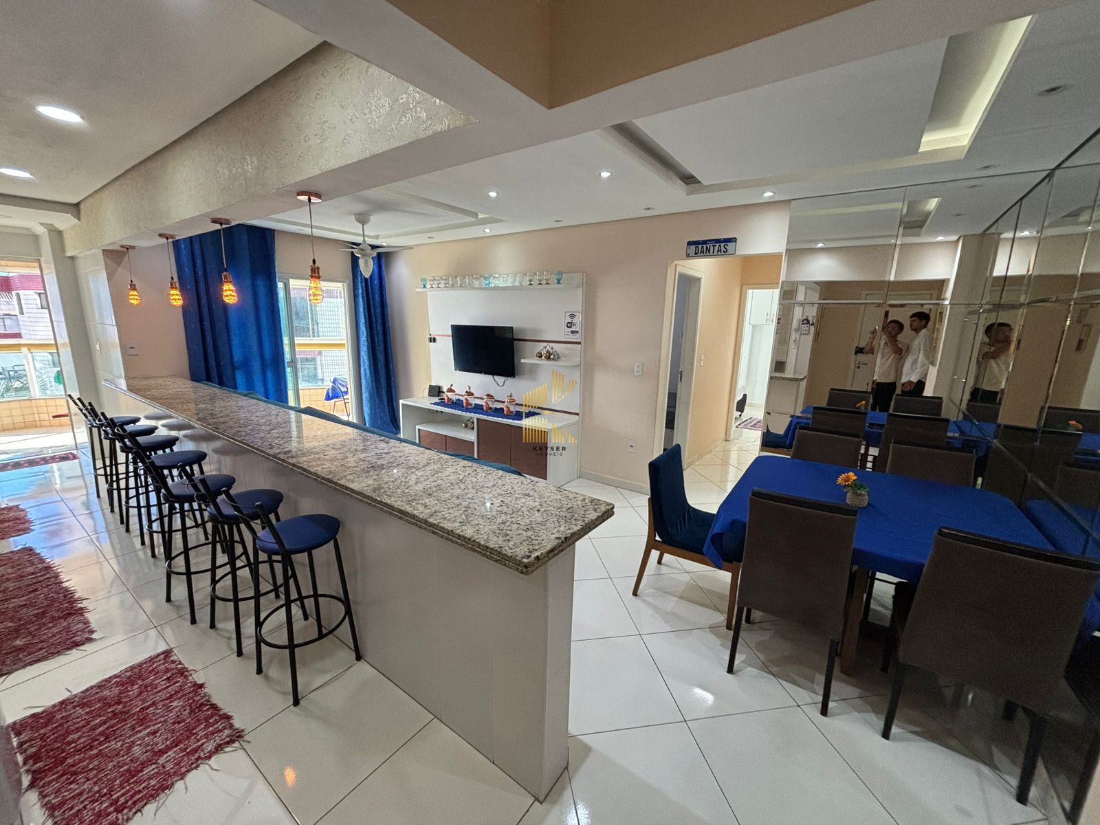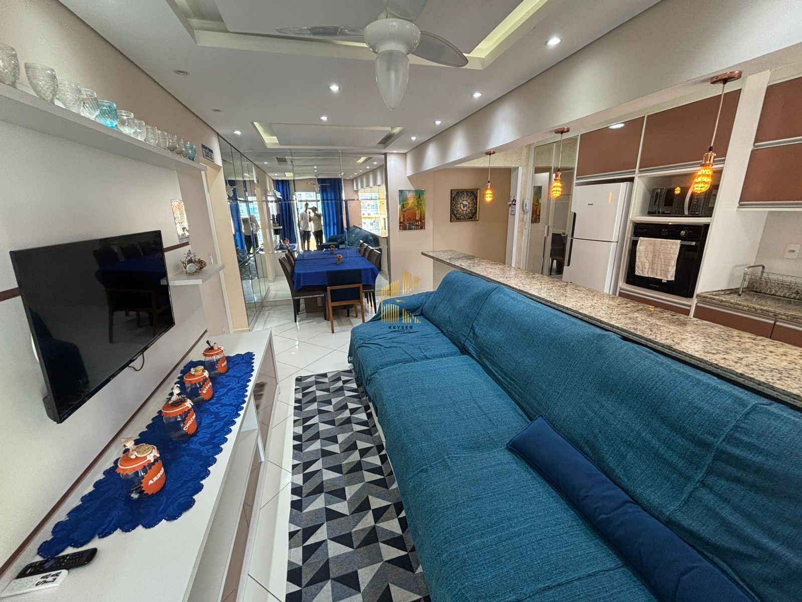 Apartamento à venda no bairro Ocian em Praia Grande, SP. 2 dormitórios sendo 1 suíte , sala dois ambientes, cozinha, 2 banheiros, área de serviço e 1 vaga de garagem. Vista para o mar.