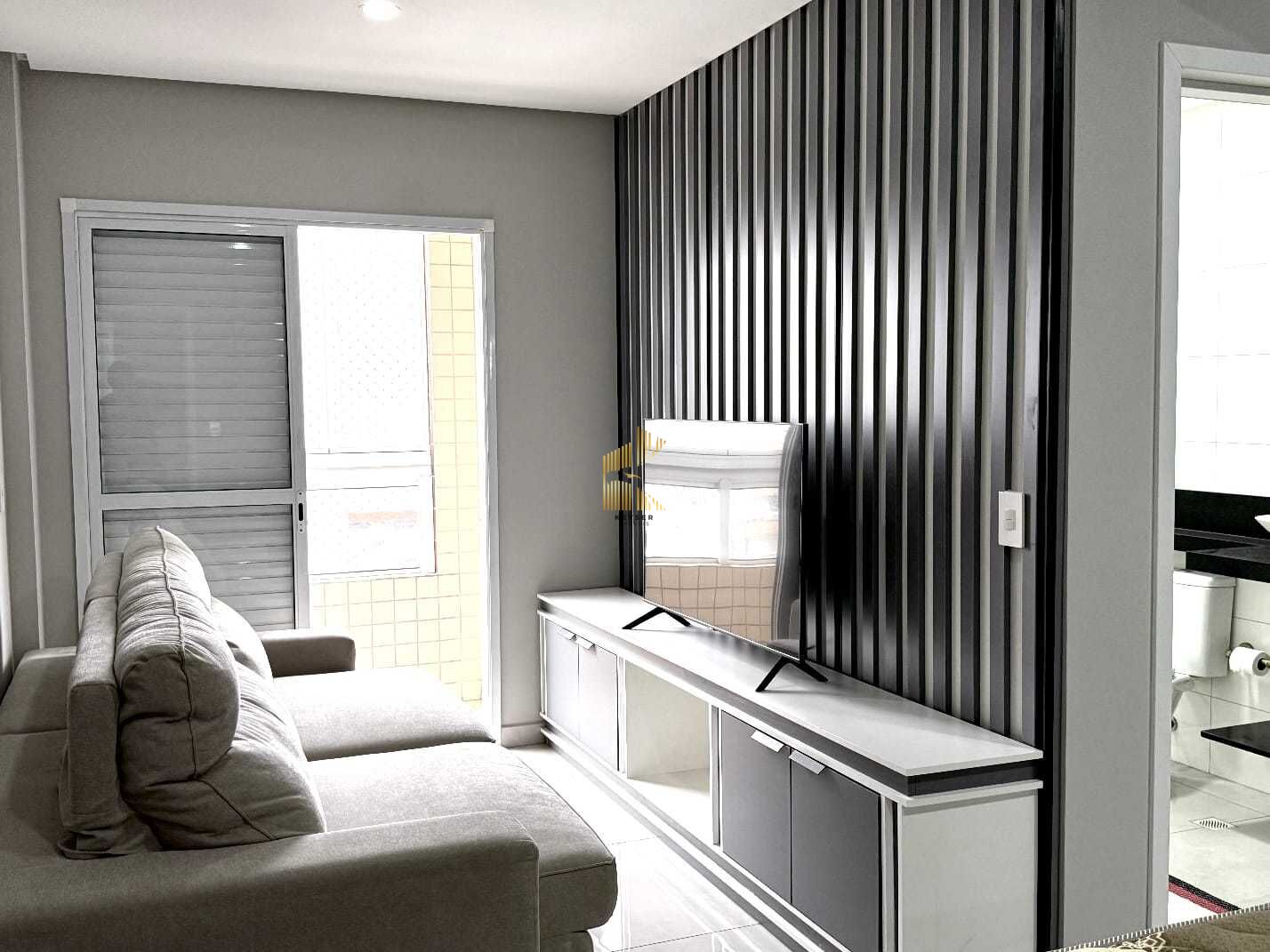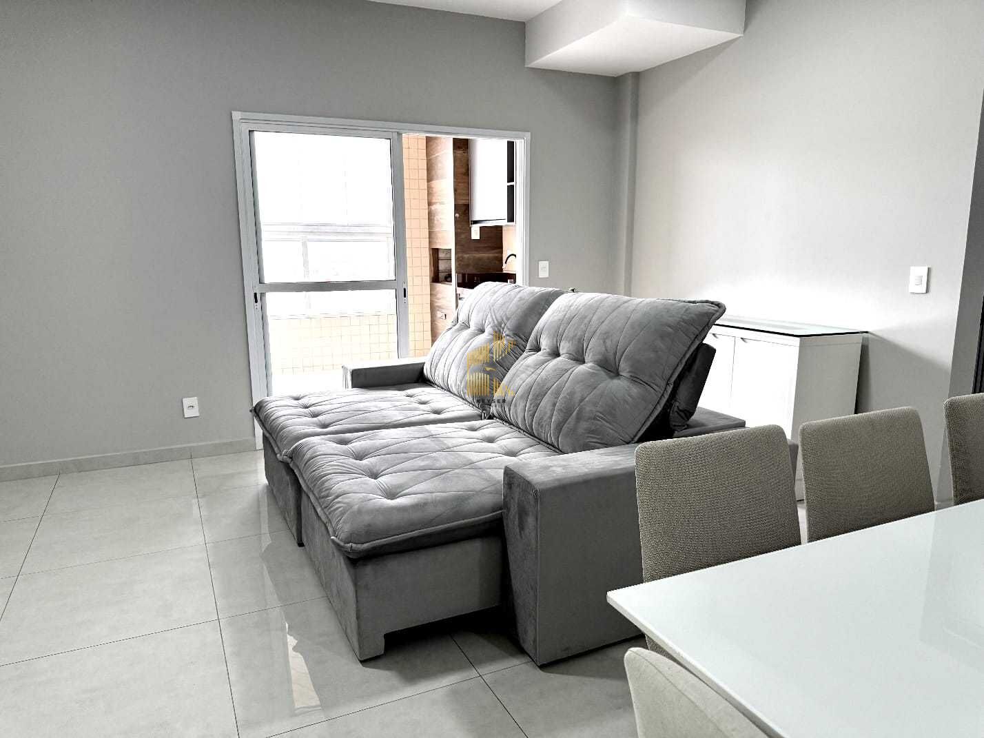 Apartamento à venda no bairro Guilhermina em Praia Grande, SP. 2 dormitórios sendo 2 suítes, sala dois ambientes com varanda envidraçada, cozinha, 2 banheiros, 1 lavabo, área de serviço e 2 vaga de garagem demarcada. Vista para o mar.