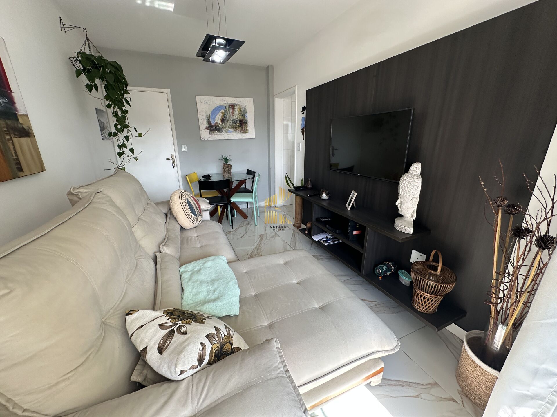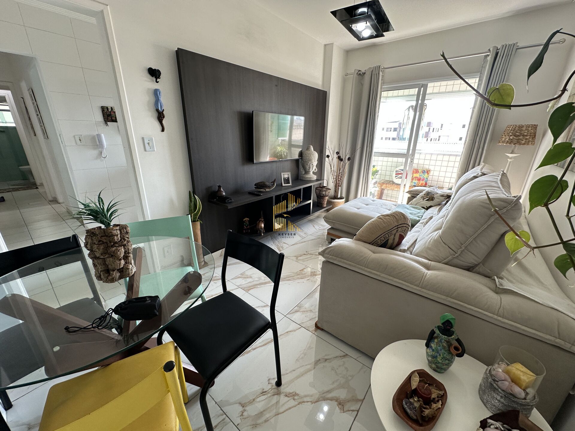 Apartamento à venda no bairro Aviação em Praia Grande, SP. 2 dormitórios sendo 1 suíte, sala dois ambientes, cozinha, área de serviço, banheiro social e uma vaga de garagem. Será vendido com porteira fechada, ou seja, completamente mobiliado.