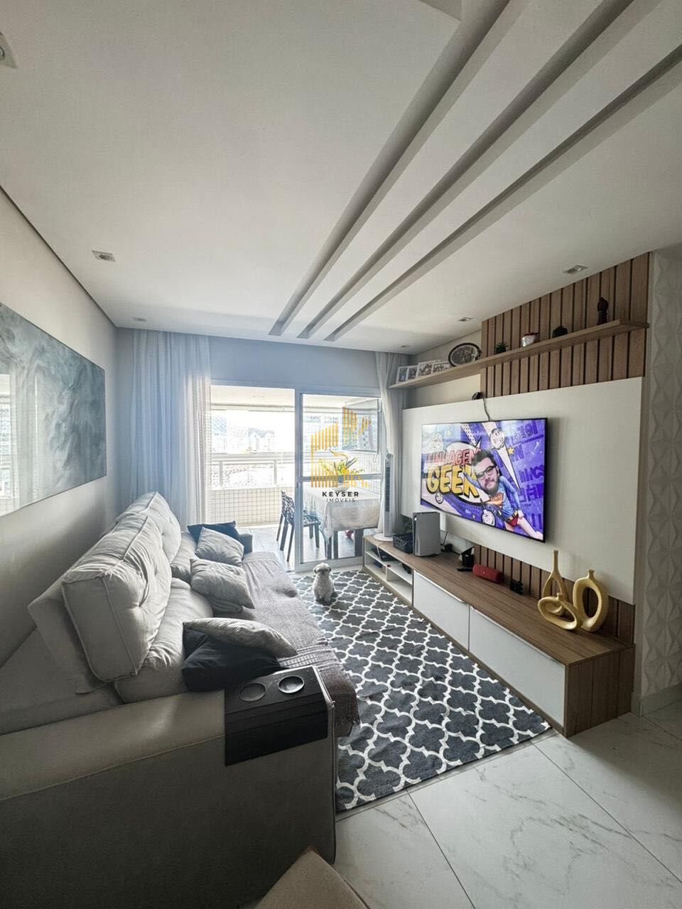 Apartamento à venda no bairro Guilhermina em Praia Grande, SP. 3 suítes, sala dois ambientes com sacada gourmet, lavabo, cozinha, copa e 2 vagas de garagem. Será vendido mobiliado.