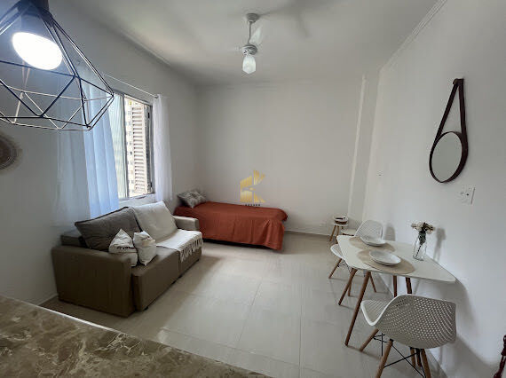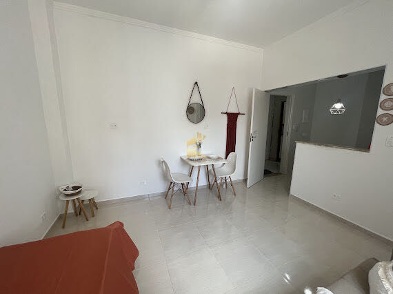 Apartamento kitnet à venda no bairro Guilhermina em Praia Grande, SP. 1 dormitório, cozinha, banheiro social.