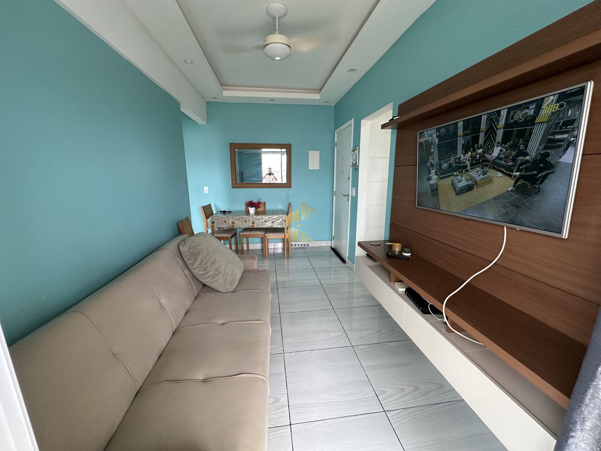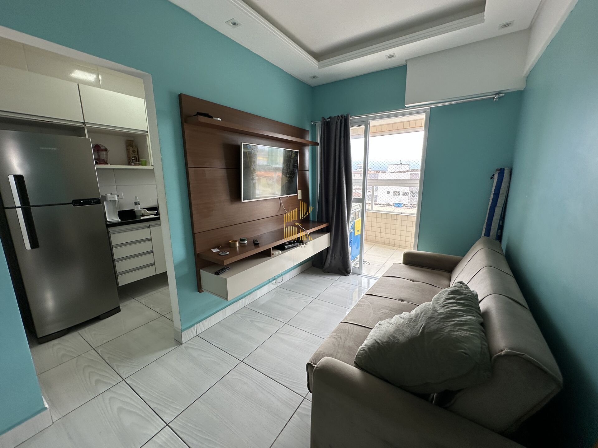 Apartamento à venda no bairro Aviação em Praia Grande, SP. 1 dormitórios, sala dois ambientes com sacada envidraçada, churrasqueira a carvão, cozinha planejada, área de serviço, banheiro social e uma vaga de garagem. Será vendido mobiliado.