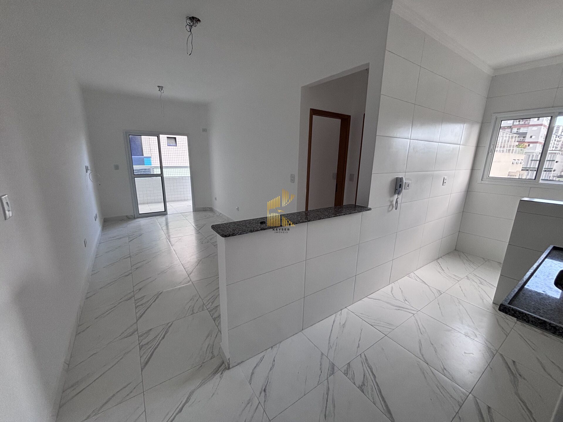 Apartamento à venda no bairro Guilhermina em Praia Grande, SP. 1 dormitório sendo 1 suíte, sala com sacada, cozinha, área de serviço, banheiro social e uma vaga de garagem.
