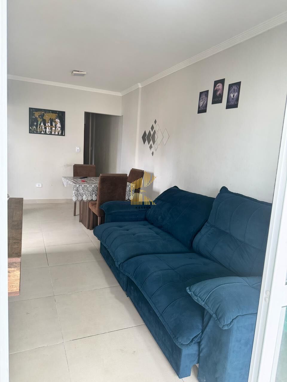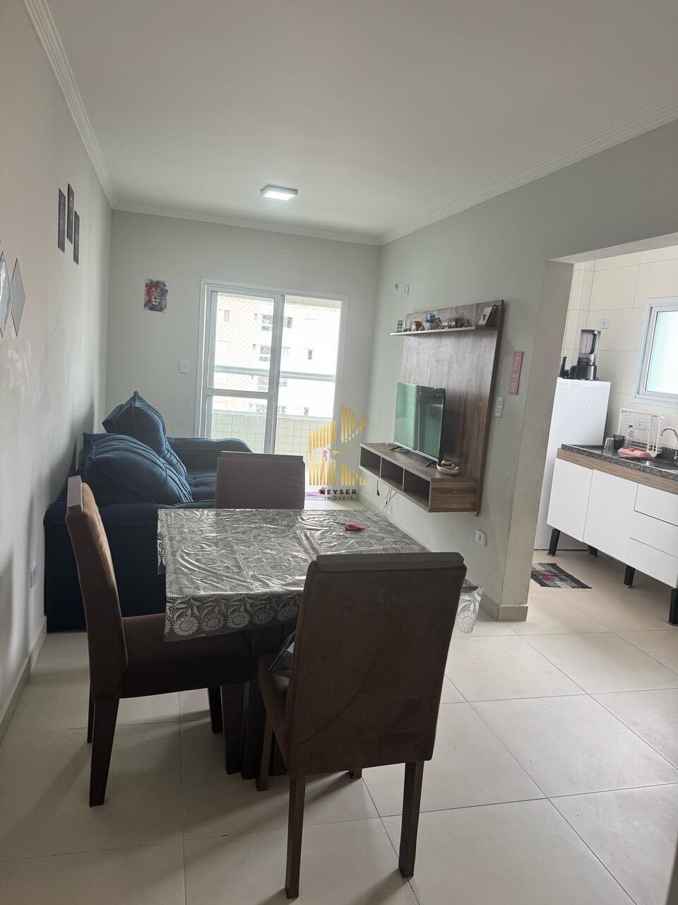 Apartamento à venda no bairro Caiçara em Praia Grande, SP. 2 dormitórios 2 suíte, sala dois ambientes com sacada com churrasqueira, área de serviço, banheiro social e 1 vaga de garagem. Sem mobilia