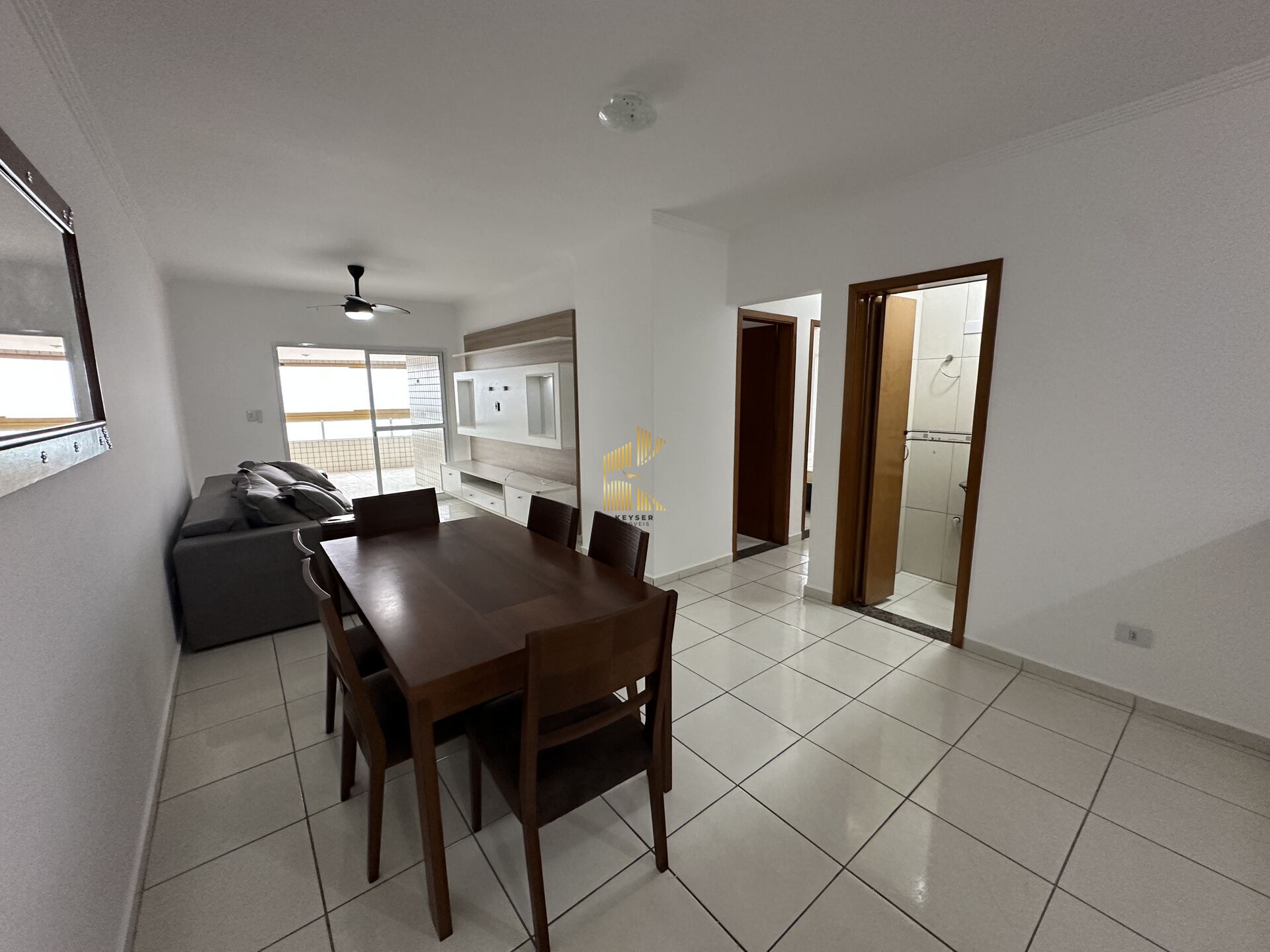 Apartamento à venda no bairro Aviação em Praia Grande, SP. 3 dormitórios sendo 3 suítes, sala dois ambientes com sacada envidraçada, cozinha planejada, área de serviço, lavabo e duas vagas de garagem.