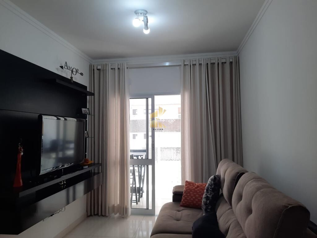 Apartamento à Venda no Bairro Guilhermina em Praia Grande, SP. 2 Dormitórios (1 suíte) , sala dois ambientes, cozinha americana, área de serviço, banheiro social e uma vaga de garagem.