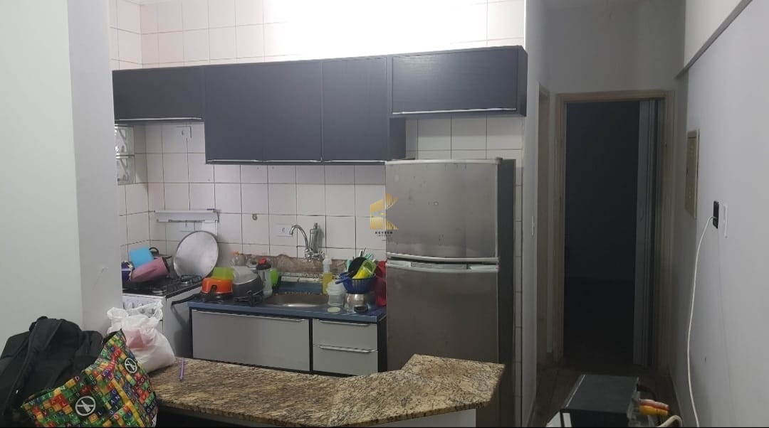 Apartamento à venda no bairro Boqueirão em Praia Grande, SP. 1 dormitório, sala, cozinha, área de serviço, banheiro social e uma vaga de garagem.