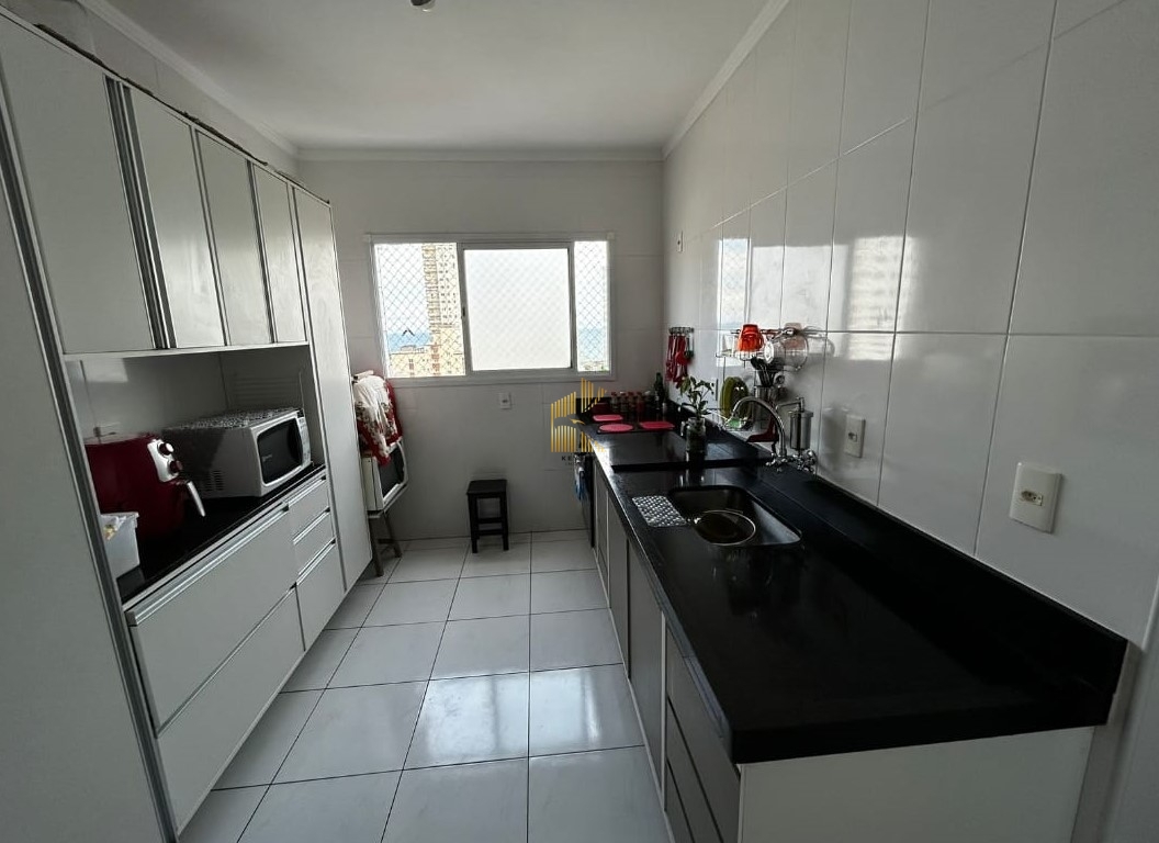 Apartamento à venda na Aviação em Praia Grande, SP. 2 dormitórios (1 suíte), sala dois ambientes, sacada gourmet com churrasqueira, cozinha , área de serviço, banheiro social e uma vaga de garagem.