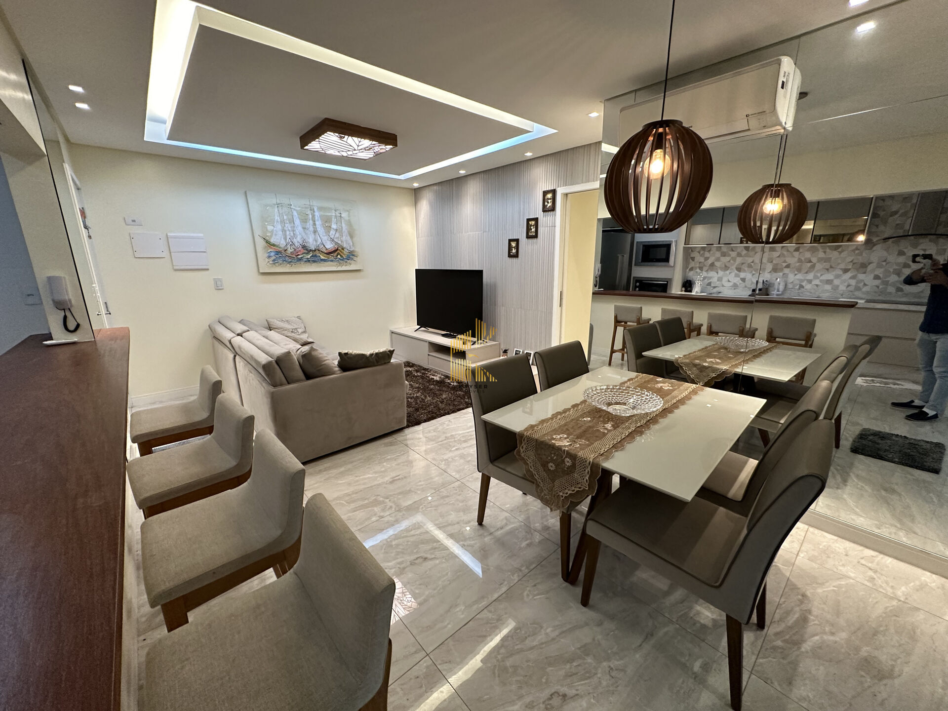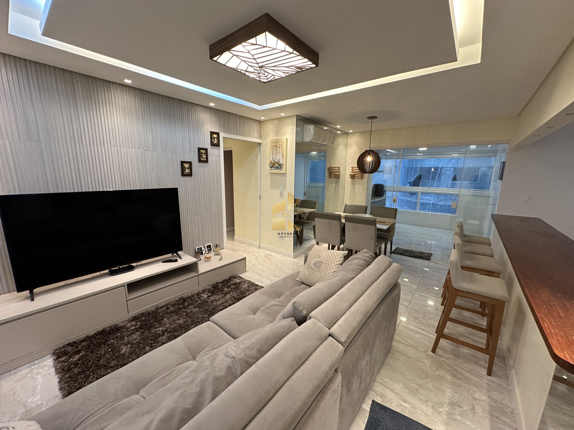 Apartamento à venda no bairro Ocian em Praia Grande, SP. 3 dormitórios (sendo 1 suíte), sala dois ambientes com sacada envidraçada, cozinha planejada de alta qualidade, área de serviço, banheiro social e duas vagas de garagem. Será vendido com porteira fechada, ou seja, completamente mobiliado.
