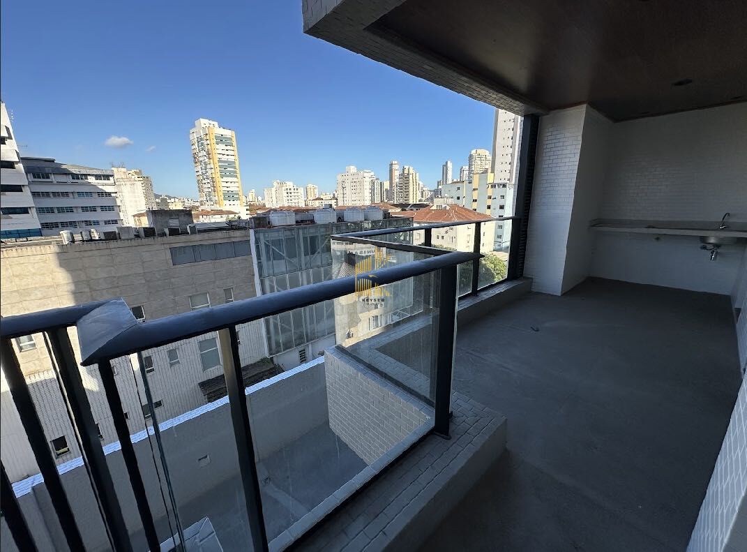 Apartamento à venda no bairro Boqueirão em Santos, SP. 1 dormitórios (1 com sacada), sala dois ambientes, cozinha, área de serviço, lavabo e uma vaga de garagem demarcada.