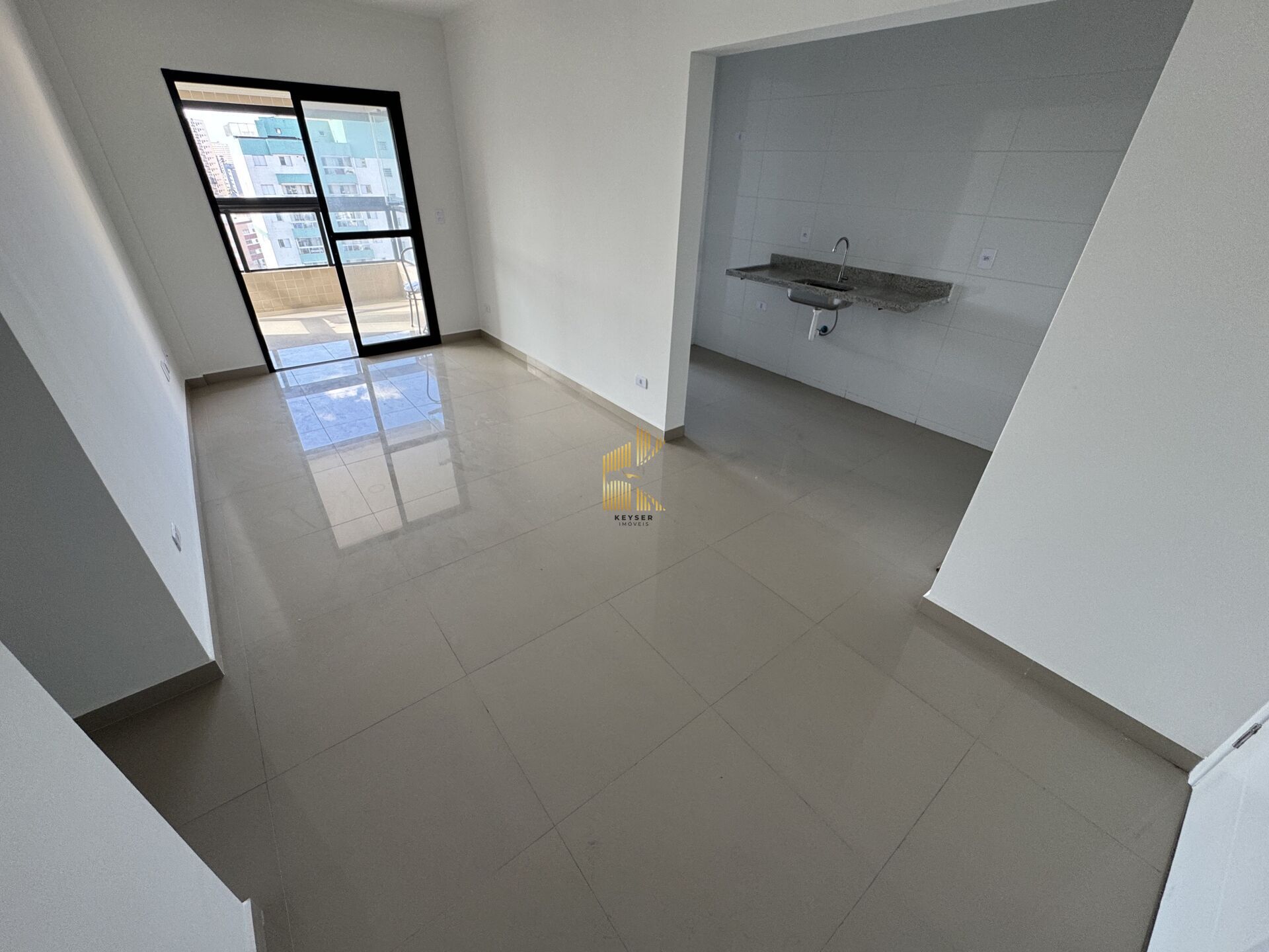 Apartamento para locação no bairro Mirim em Praia Grande, SP. 2 dormitórios (sendo 1 suíte), sala dois ambientes com sacada envidraçada, cozinha, área de serviço, área técnica, banheiro social e uma vaga de garagem.