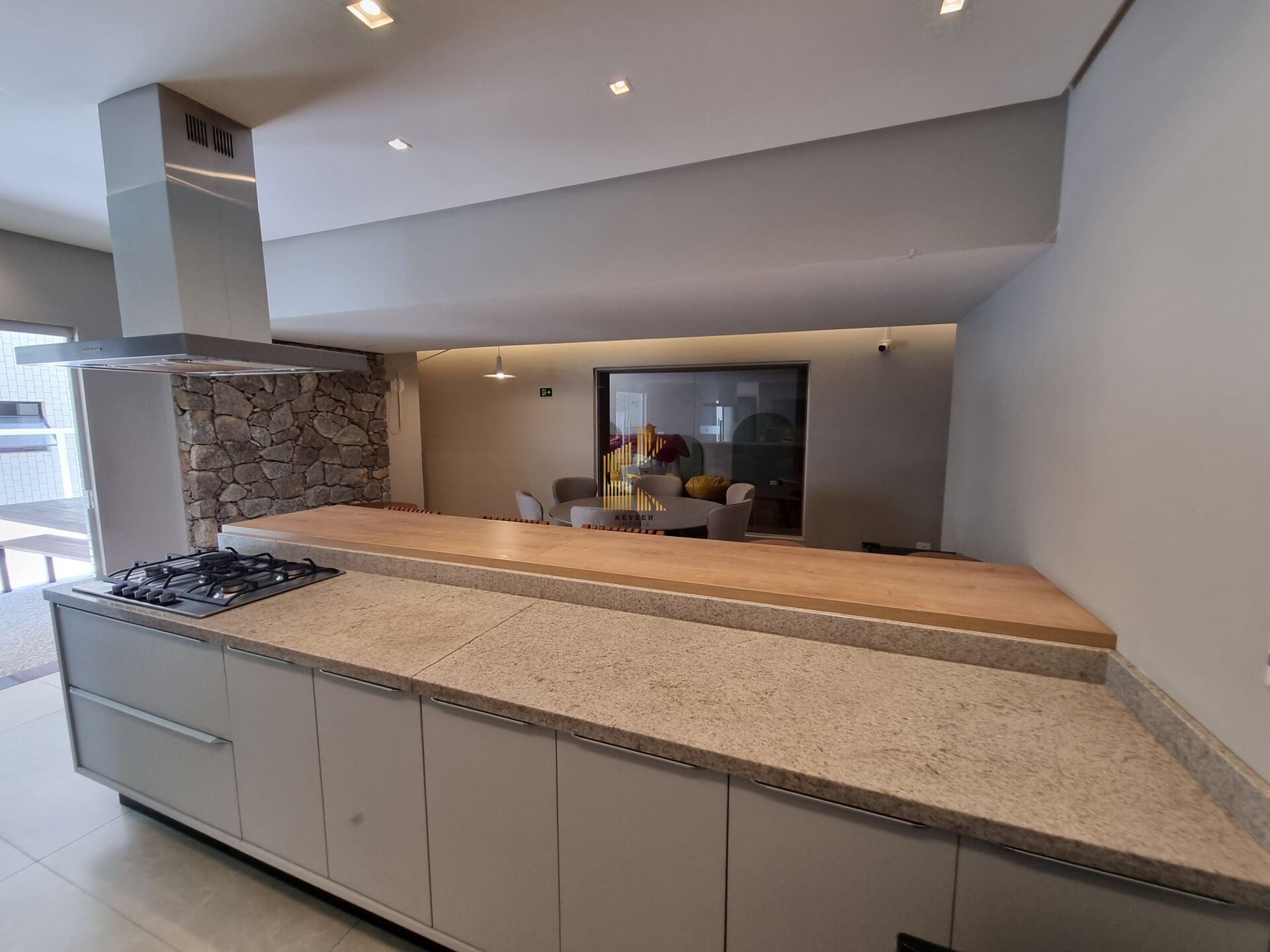 Apartamento para locação anual no bairro Guilhermina em Praia Grande, SP. 3 dormitórios sendo 3 suítes, sala dois ambientes com varanda envidraçada, cozinha com planejados, área de serviço, lavabo, 3 vagas de garagem privativas e demarcadas com tomada para carro elétrico.