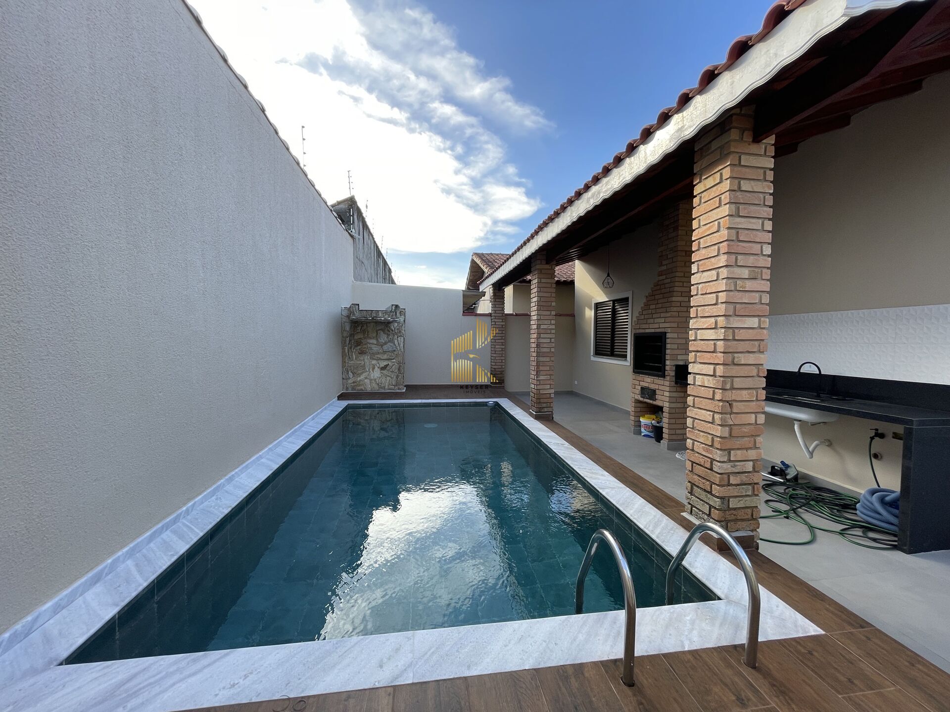 Casa á venda em Peruíbe - SP. 3 dormitórios( 1 suíte), sala para 2 ambientes, cozinha, banheiro social, área de serviço, espaço gourmet com churrasqueira, piscina de alvenaria 2 vagas de garagem. Imóvel todo reformado.