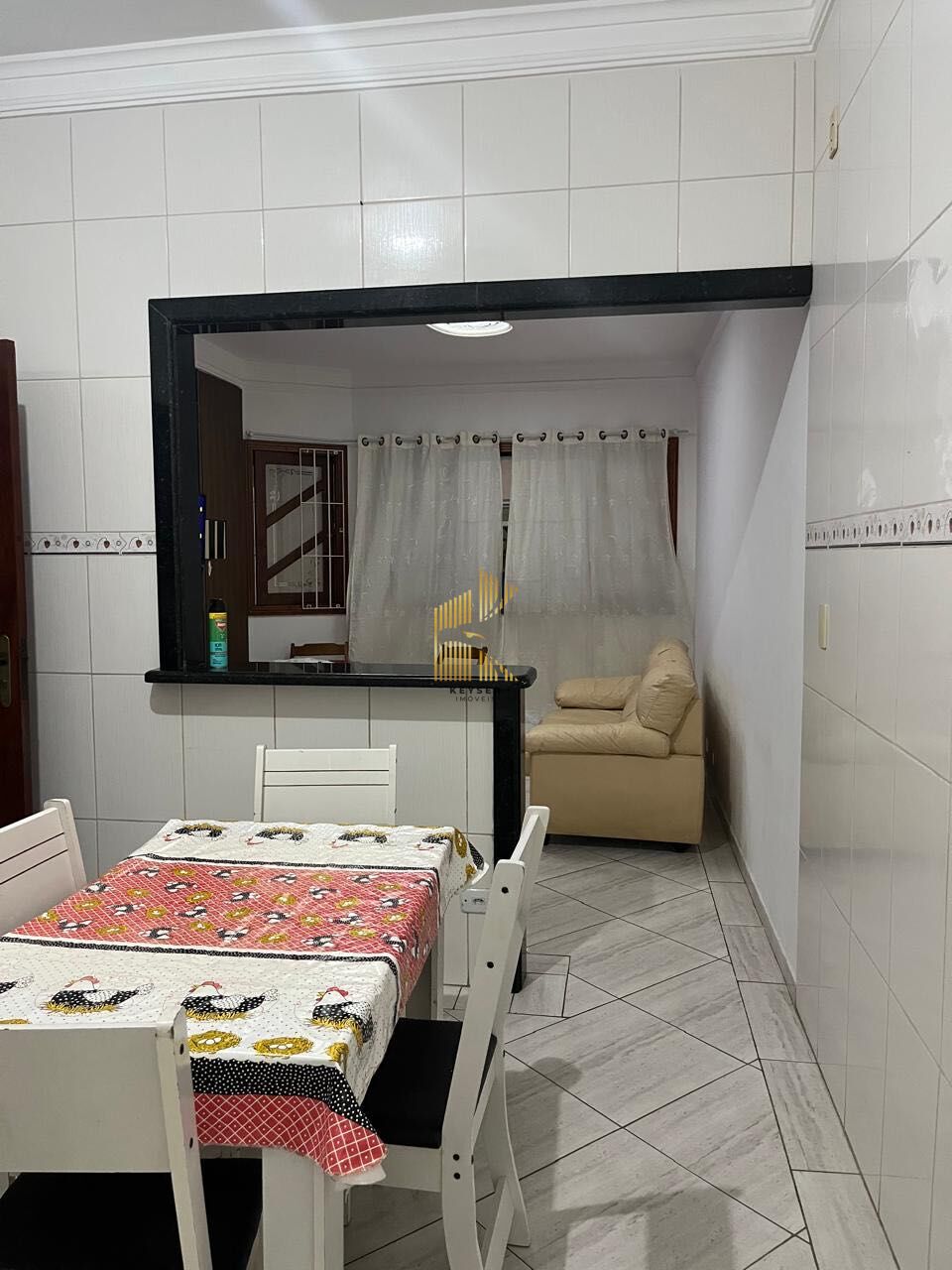 Casa à venda no bairro Caiçara em Praia Grande, SP. 3 quartos, sala, cozinha, 3 banheiros, área de serviço, piscina, churrasqueira e 2 vagas de garagem.