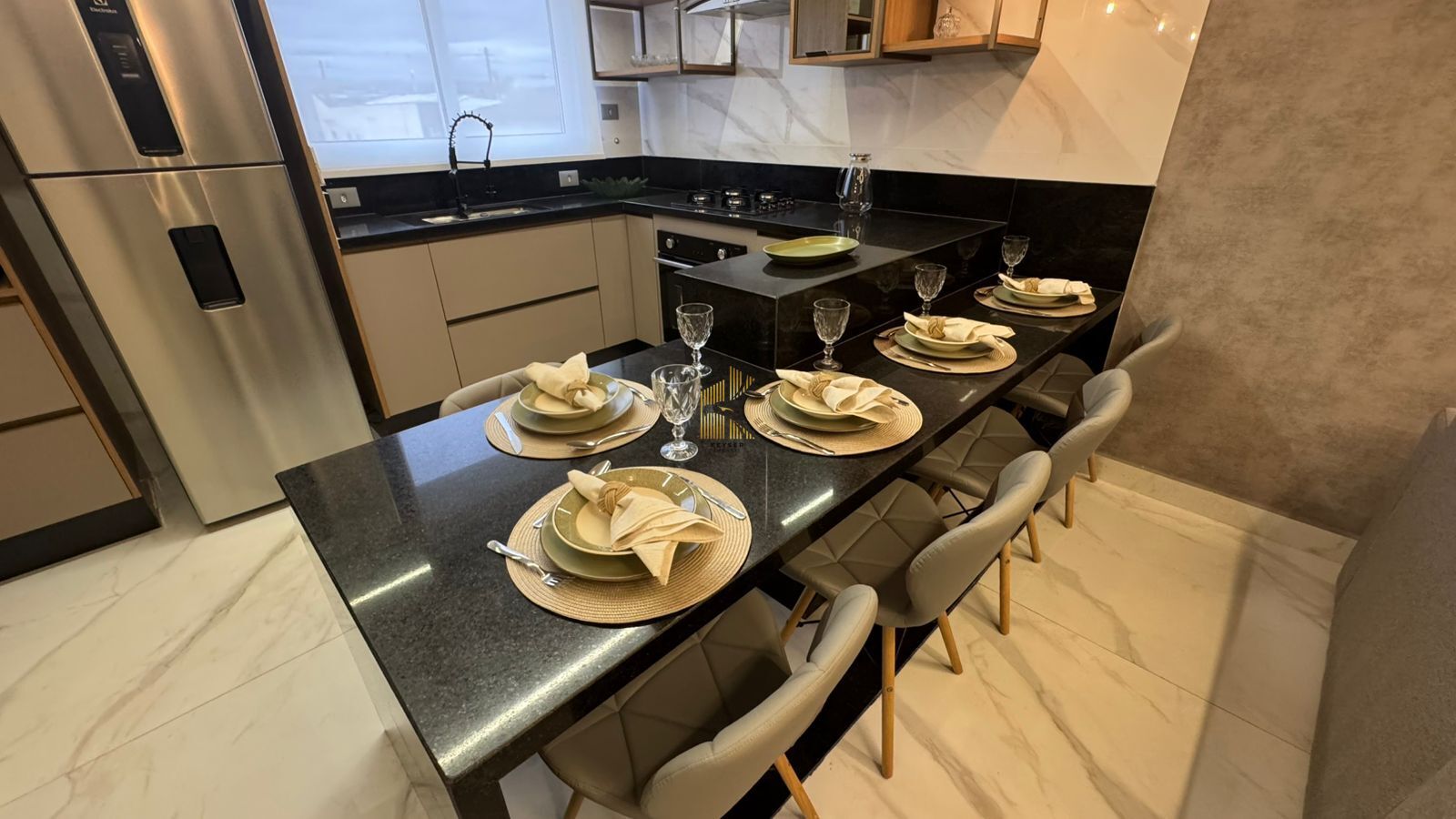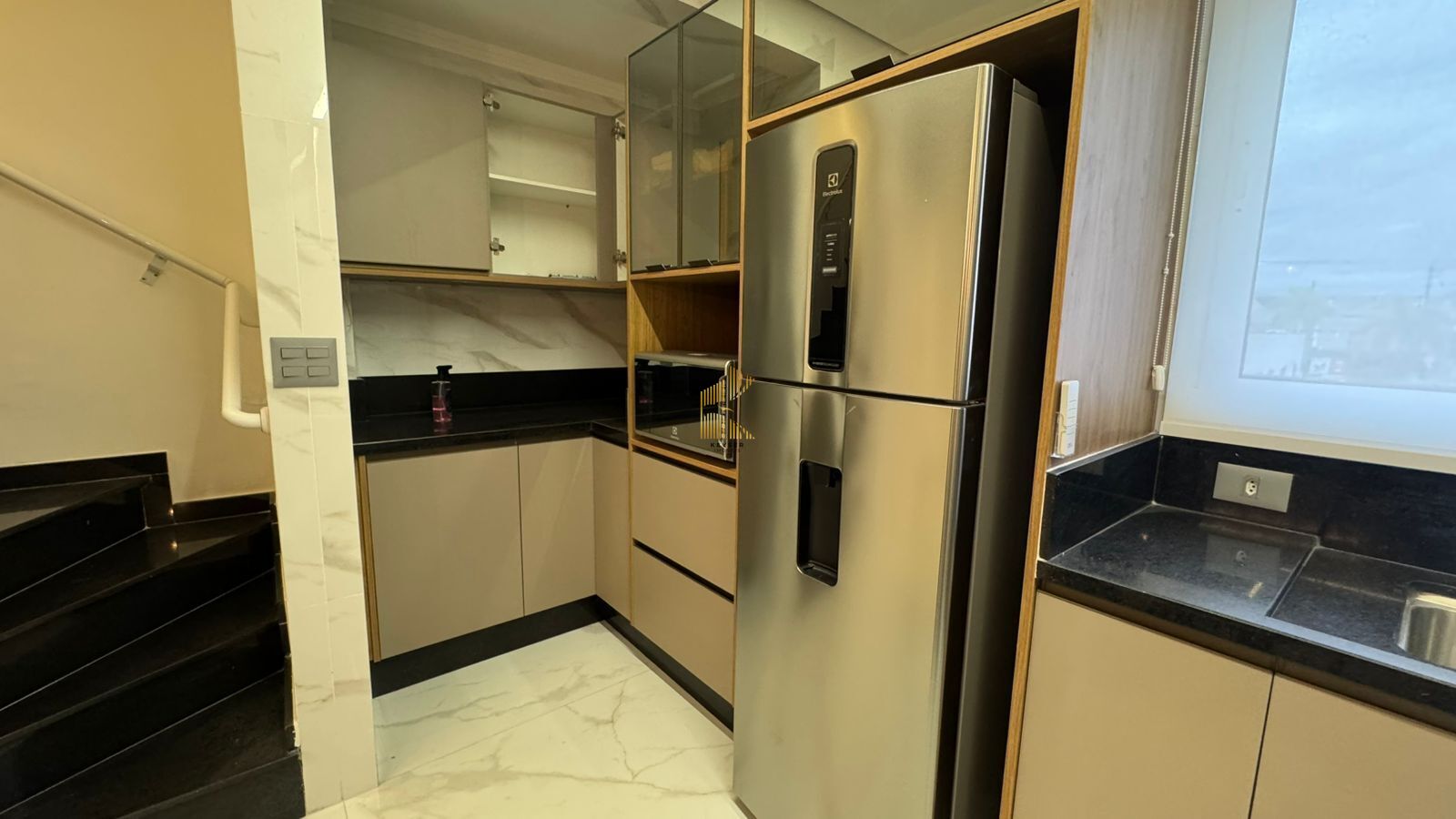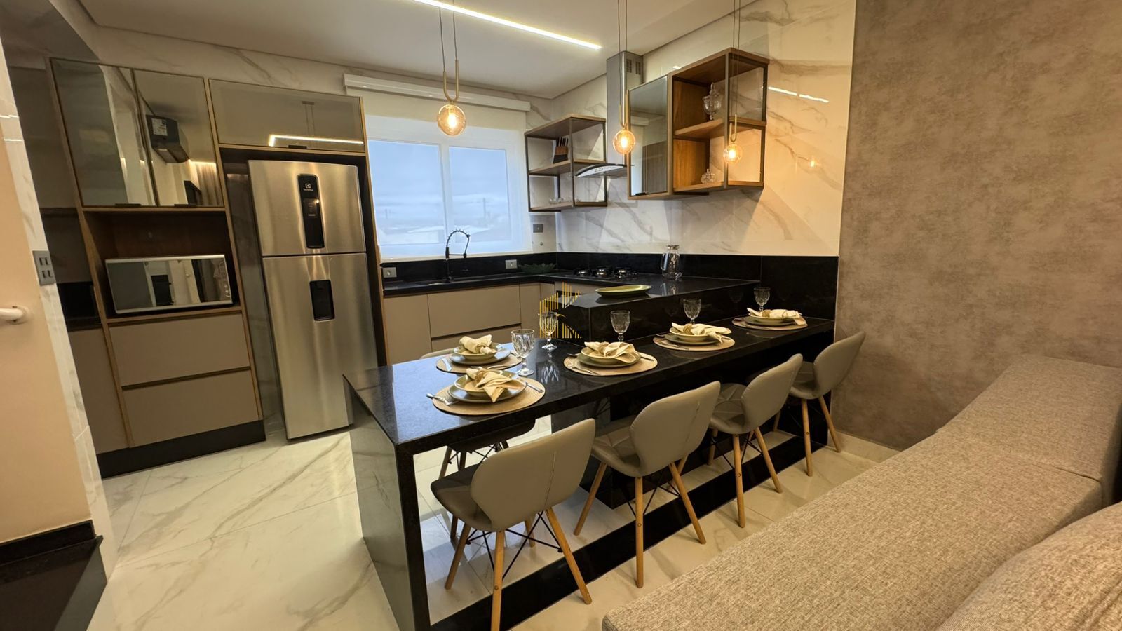 Casa triplex á venda em condomínio fechado no bairro Guilhermina - Praia Grande - SP. Com 2 dormitórios, sendo 2 suítes. Sala com cozinha planejada integrada conceito aberto, dois lavabos, área de serviço, 1 vaga de garagem privativa, quintal com churrasqueira, pia, fogão cooktop. Será vendido porteira fechada, totalmente mobiliado, com fechadura eletrônica, portão automático.